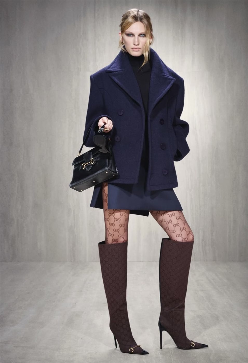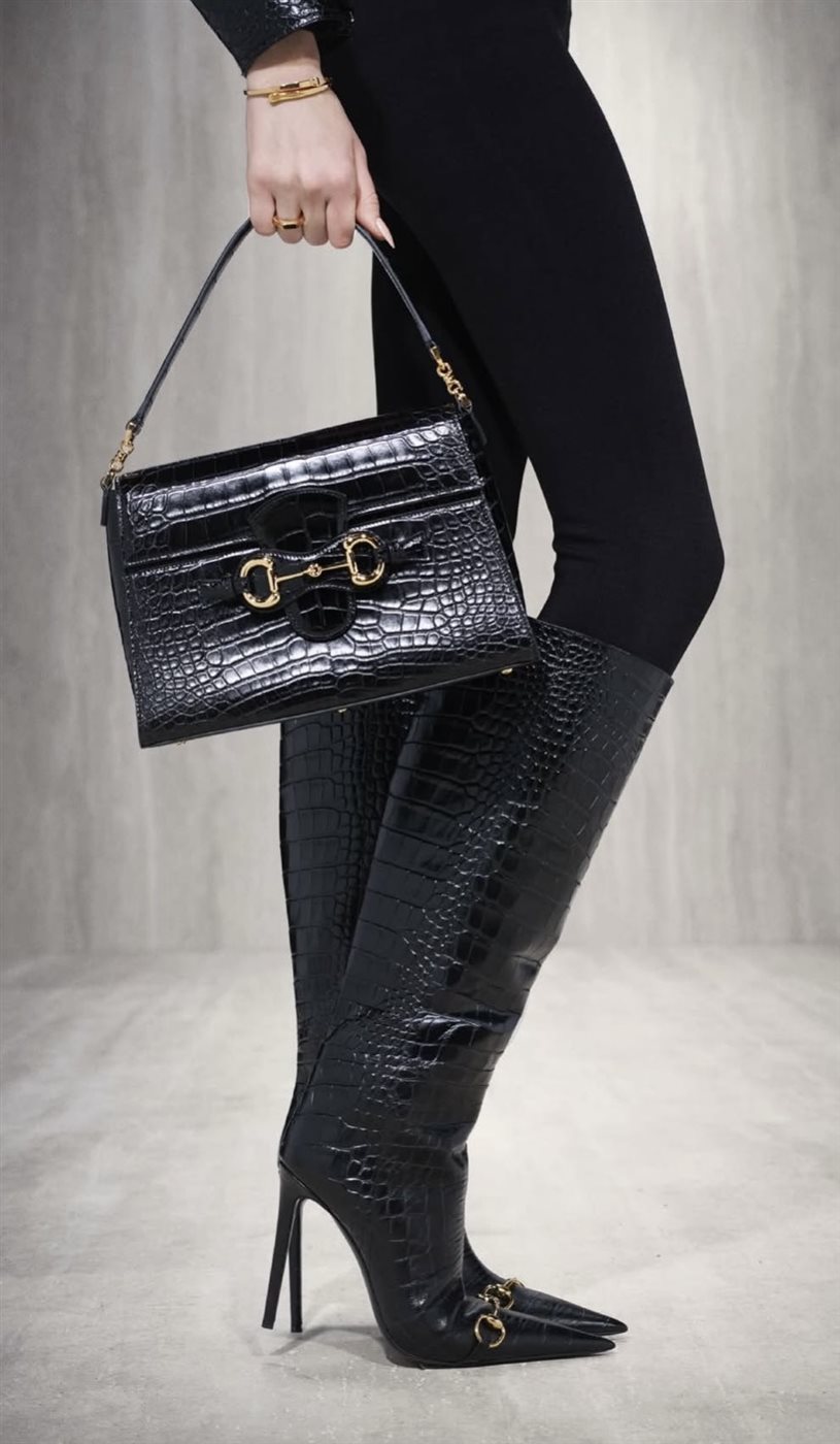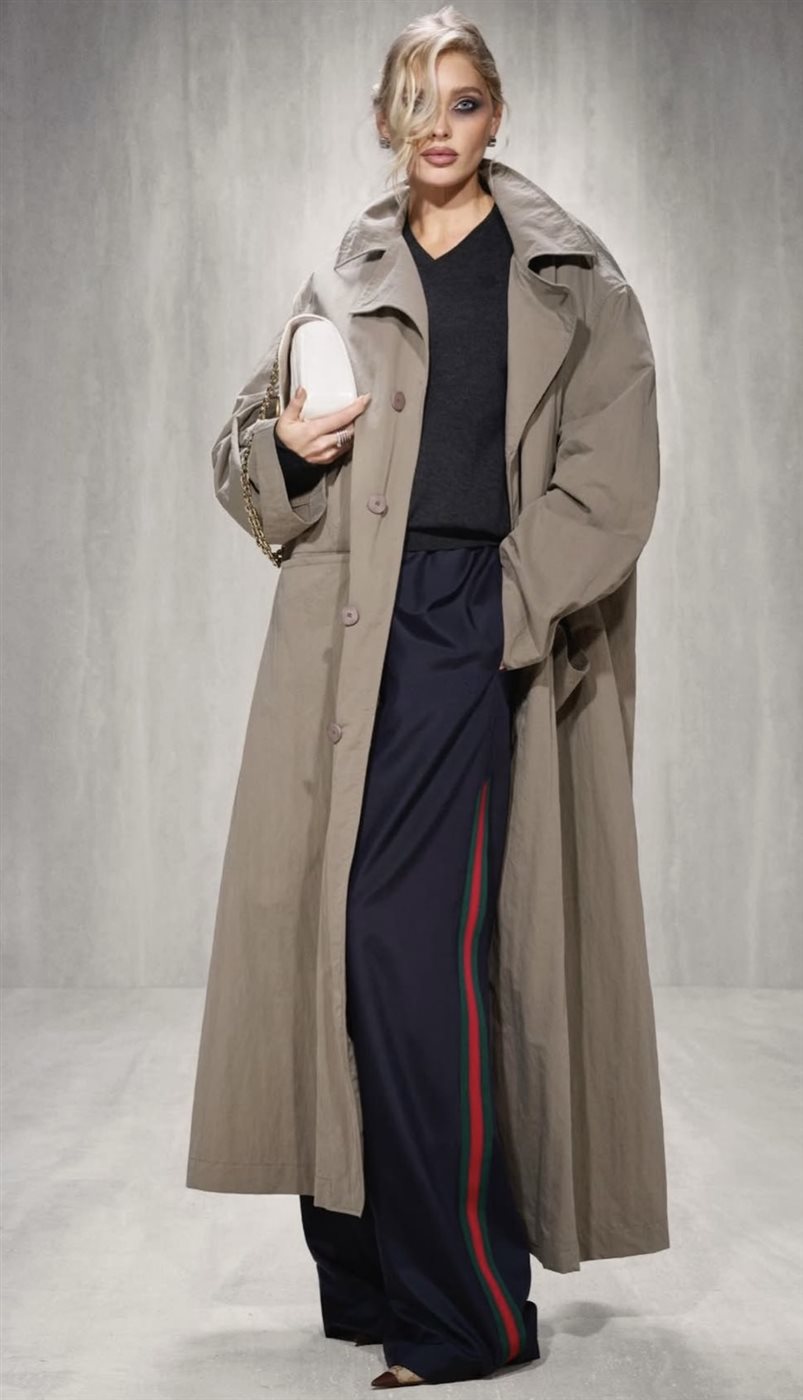 ولم يغب الطابع الفني عن العرض؛ فقد حضرت لمسات كلاسيكية عبر الثنيات المنسدلة والأشكال المنحوتة التي استحضرت روح التماثيل القديمة، بينما حافظت المجموعة على صلتها بثقافة الشارع الحديثة من خلال الجاكيتات الريشية الخفيفة والجلود الانسيابية، ما خلق توازنًا بين الرقي والواقعية. هذا التداخل بين الكلاسيكية والحداثة منح المجموعة شخصية معاصرة دون أن تفقد صلتها بهوية Gucci المعروفة بالتجريب والتطور المستمر.