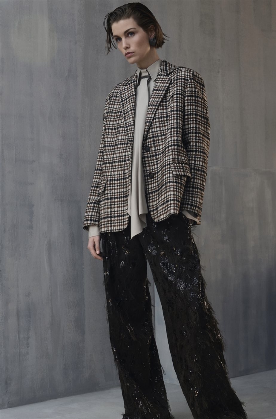 وتعكس المجموعة انسجاماً واضحاً بين الخياطة الدقيقة والطابع الرومانسي الريفي، حيث اختارت الدار تقديم تصاميم تجمع بين البنية الكلاسيكية والنعومة الأنثوية. ظهرت البدلات والمعاطف بقصّات متقنة تعكس مهارة الحرفيين، بينما أضفت التفاصيل الناعمة مثل الدانتيل لمسة شاعرية خفيفة توازن بين القوة والرقة. هذا التداخل بين العناصر الصارمة والناعمة منح الإطلالات شخصية متكاملة، تعبّر عن امرأة معاصرة تبحث عن الأناقة العملية دون أن تتخلى عن حسّها الأنثوي.