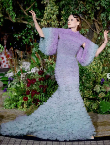 احتوت المجموعة أيضًا على فساتين مناسبة للسهرات وفساتين مزودة بتصميم الكورسيه مع التنورات المنسدلة.