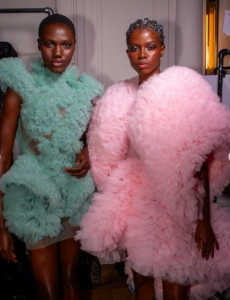 رأينا أيضًا الدانتيل الأسود على القمصان والبنطلونات والفساتين، واهتم كريستيان سيريانو بتنوع مقاسات التصميمات حتى تناسب جميع الأجسام.