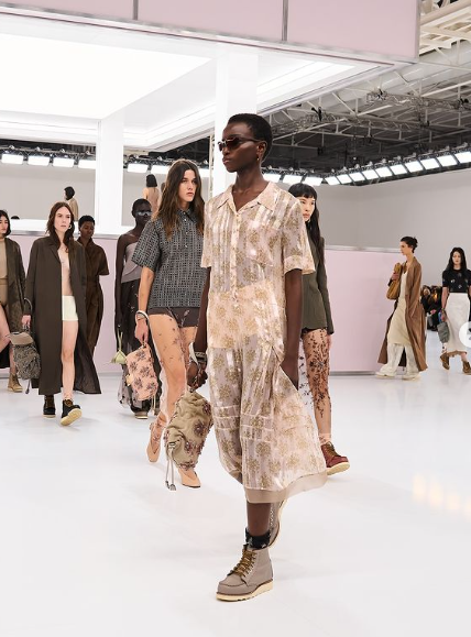 وافتُتح أسبوع الموضة في ميلانو بعرض Fendi لموسم ربيع وصيف 2025، وتضمنت المجموعة الأزياء اليومية في عشرينيات القرن الماضي، ولكن بطريقة عصرية، وقال كيم جونز المدير الإبداعي للدار عن مصادر الإلهام للعرض الجديد “إن الأمر يتعلق بالحداثة في الأسلوب والمواقف”.