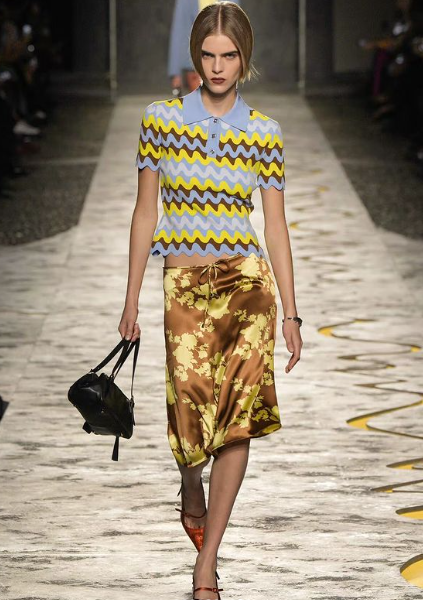 فجاءت التصميمات شبابية مثل الكارديجان والشورتات القصيرة والبنطلونات الجينز والفساتين اللامعة بالتصميمات الهندسية وأشكال الزهور المطبوعة والألوان تنوعت بين درجات الباستيل والبنفسجي والذهبي والأزرق والبني.