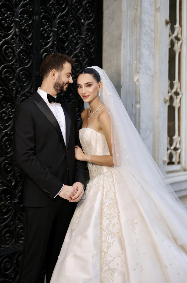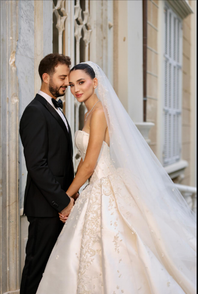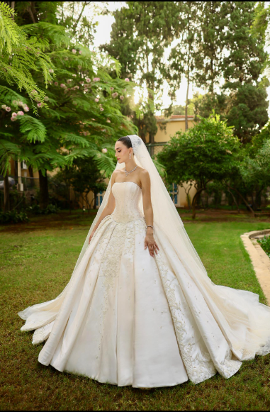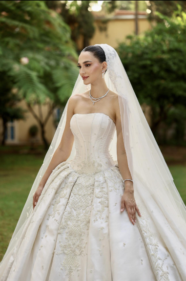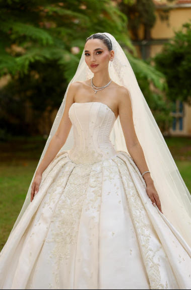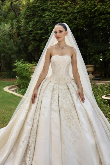 ساندي تابت بإطلالة ملكية من نيكولا جبران في زفافها