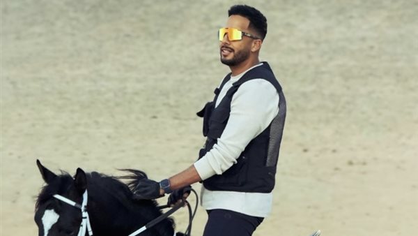 عصام السقا فى جلسة تصوير جديدة مع الحصان "صقر"