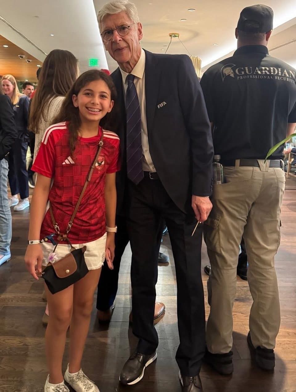 وظهرت ابنة متعب أيضاً مع المدرب الفرنسي القدير أرسين فينغر المدير الفني الأسبق لفريق آرسنال الإنجليزي وأحد أبرز خبراء التدريب حول العالم.