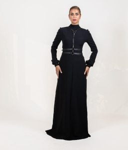 ضمت المجموعة أيضًا الفستان المغطى بالكامل، والمزين بحزام من الرقبة ويصل إلى الخصر.