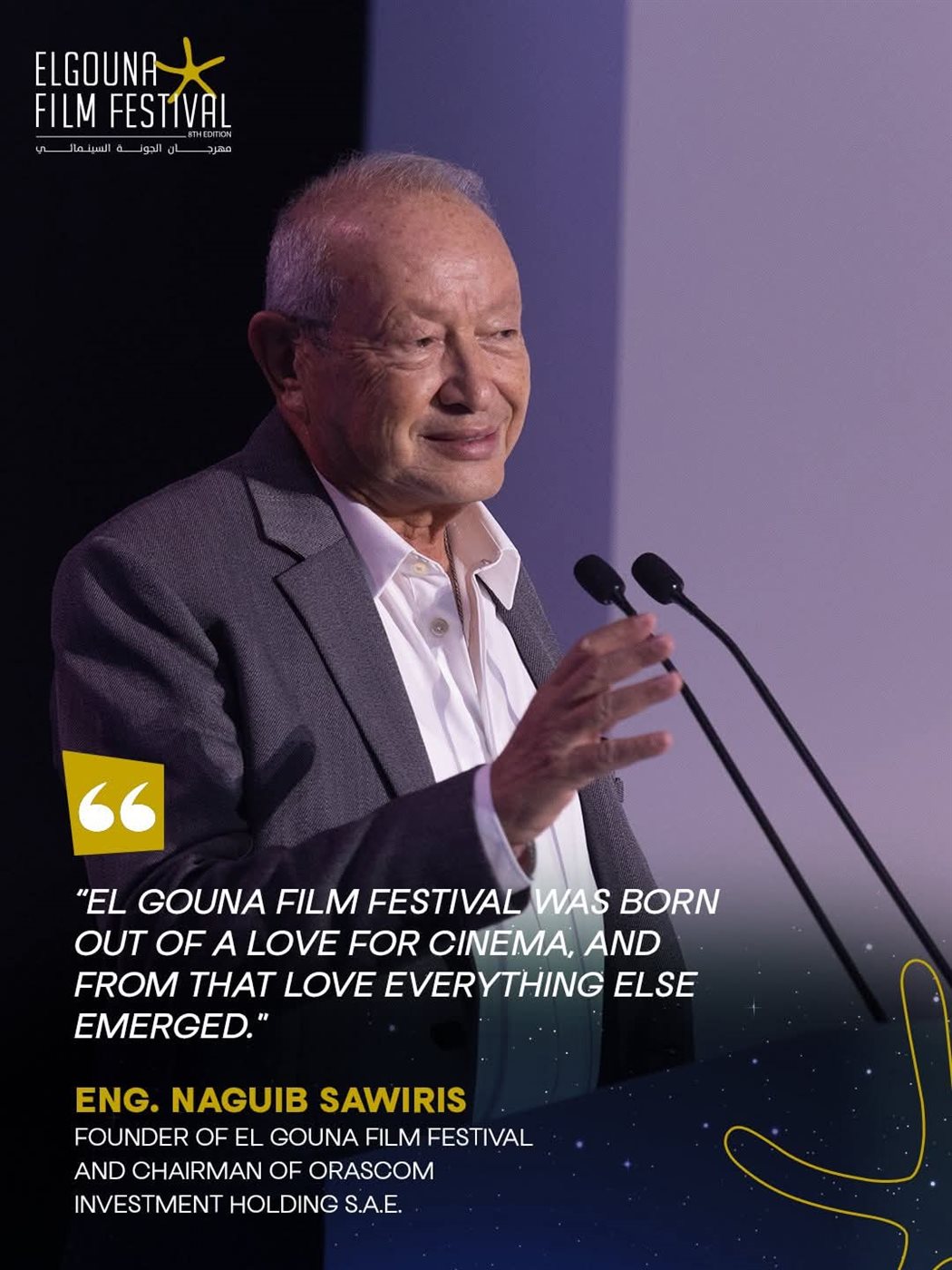 وأشار ساويرس إلى أهمية دعم المواهب الجديدة: “في مهرجان الجونة، نوفر مساحة لكل المواهب لتعبّر عن نفسها وتتواصل مع العالم، وأنا فخور برؤية أسماء عربية تتألق في مهرجانات دولية كبيرة مثل "كان” و"فينيسيا"، والفخر يكون أكبر عندما نعرف أن بعض هذه الأسماء بدأت رحلتها معنا في الجونة".