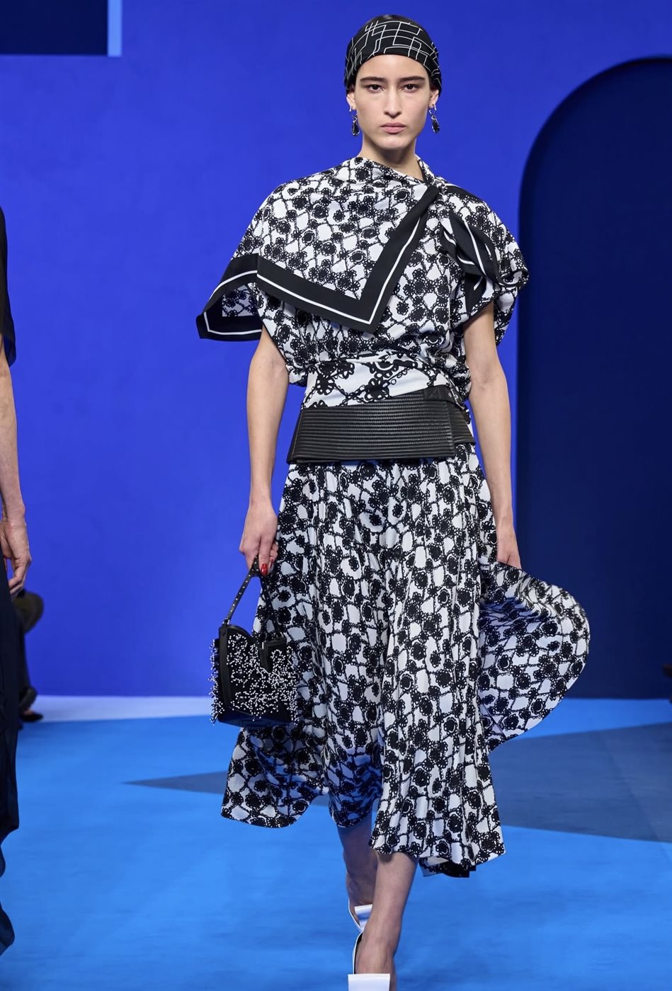 وفي قلب المجموعة، برزت الأكتاف البارزة كدلالة على الثبات والقوة، عودة إلى القصات الهيكلية التي تمنح الإطلالة حضورًا قويًّا وكأنما تتحدّى الزمان. كما أضفت الأوشحة المبتكرة لمسة درامية بين الأقمشة الشفافة والنسيج الكثيف، تغلّف الرقبة بحركات مرنة تُضفي على الإطلالات حيوية وتنوّعًا بصريًا. أما التنانير، فقد جاءت بأنماط متدرجة ومُقسّمة، تمنح الحركة والرقّة في آن واحد ، مع لمسات خفية من الطيات والتداخلات التي تُشبه أسلوبًا من الماضي مع تجديد عصري.