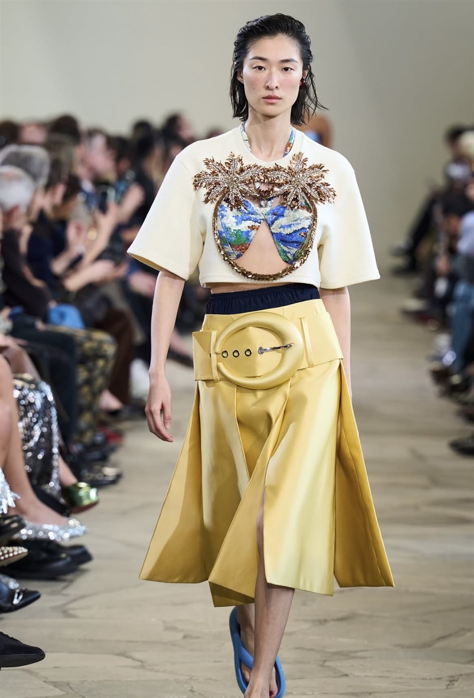 وكان لافتًا أن العرض لم يقتصر على الأزياء وحدها، بل صنع أجواء مسرحية حولت المنصة إلى مشهد يحاكي رحلة صيفية أبدية. وكأن الجمهور انتقل إلى مكان يلتقي فيه الشاطئ بالمدينة، حيث يتناغم البريق المعدني مع أشعة الشمس، لتولد هوية جديدة للموضة الاستوائية المستقبلية.