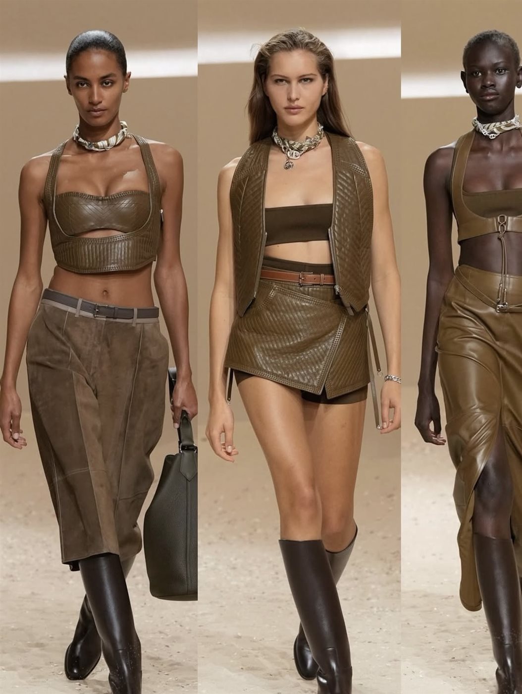 وقدّمت الدار أيضاً مجموعة من الأحذية المسطحة والصنادل الجلدية المصنوعة بحرفية عالية، إلى جانب حقائبها الأيقونية التي ظهرت بتفاصيل جديدة تعبّر عن تطور Hermès دون أن تفقد لمستها الكلاسيكية. أما الجلود، فحُوّلت إلى خامات انسيابية تواكب حركة الجسد في سلاسة وأناقة.