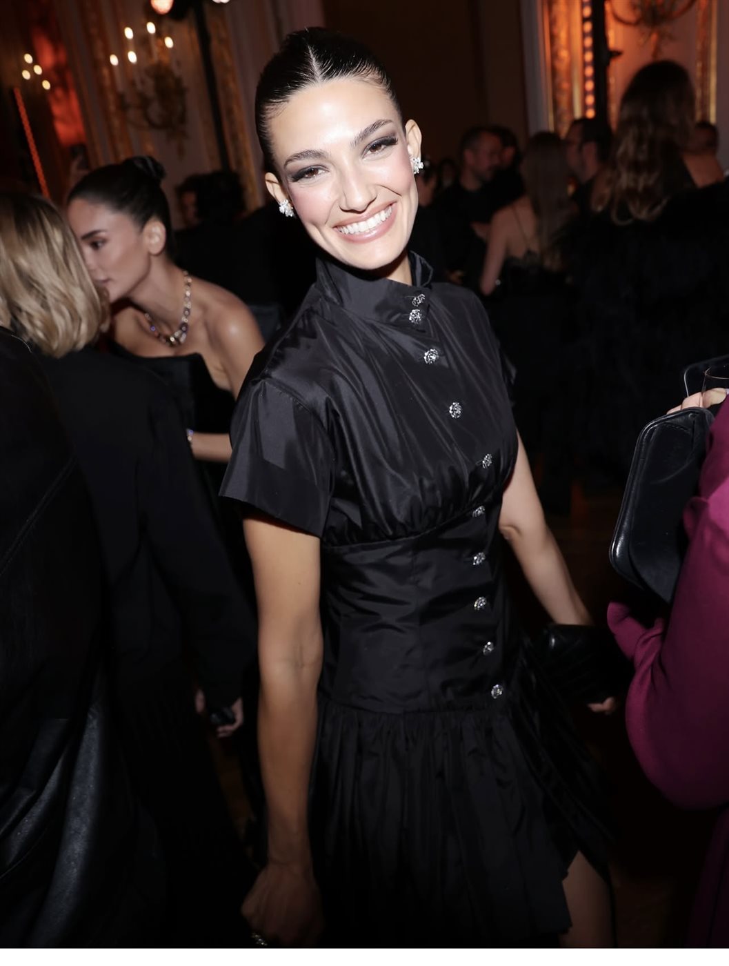 أما من حيث الإطلالة، فقد جسدت تارا عماد الأناقة الباريسية في أبهى صورها، إذ اختارت أن تتألق بفستان فاخر من دار شانيل chanelofficial، جمع بين الرقي والبساطة بلمسات كلاسيكية تعكس هوية الدار العريقة. ونسّقت إطلالتها مع مجوهرات فخمة من cartier، أضافت بريقًا من الفخامة على حضورها المتألق.