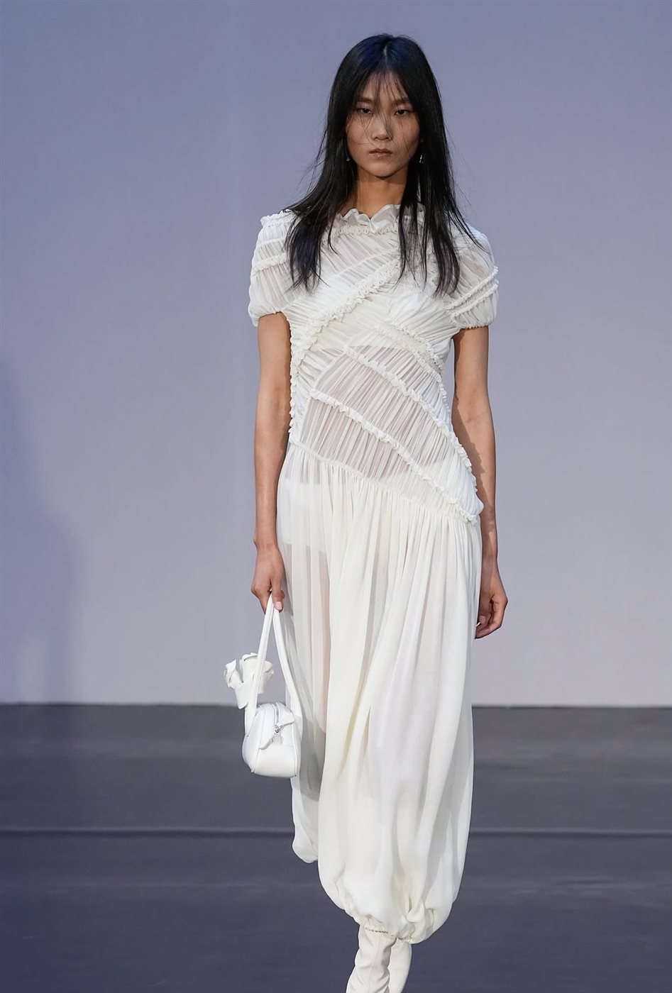 في عرض استثنائي جمع بين النعومة والجرأة، كشفت المصممة البولندية ماجدا بوترِم (Magda Butrym) عن مجموعتها الجديدة لربيع وصيف 2026 خلال أسبوع باريس للموضة، حيث قدمت رؤية أنثوية آسرة تمزج بين الرومانسية الحالمة والحضور القوي للمرأة المعاصرة. وكعادتها، نجحت بوترِم في تقديم صياغة فنية فريدة تجمع بين الإحساس الكلاسيكي بالتفاصيل والابتكار الجريء في القصّات والخامات.