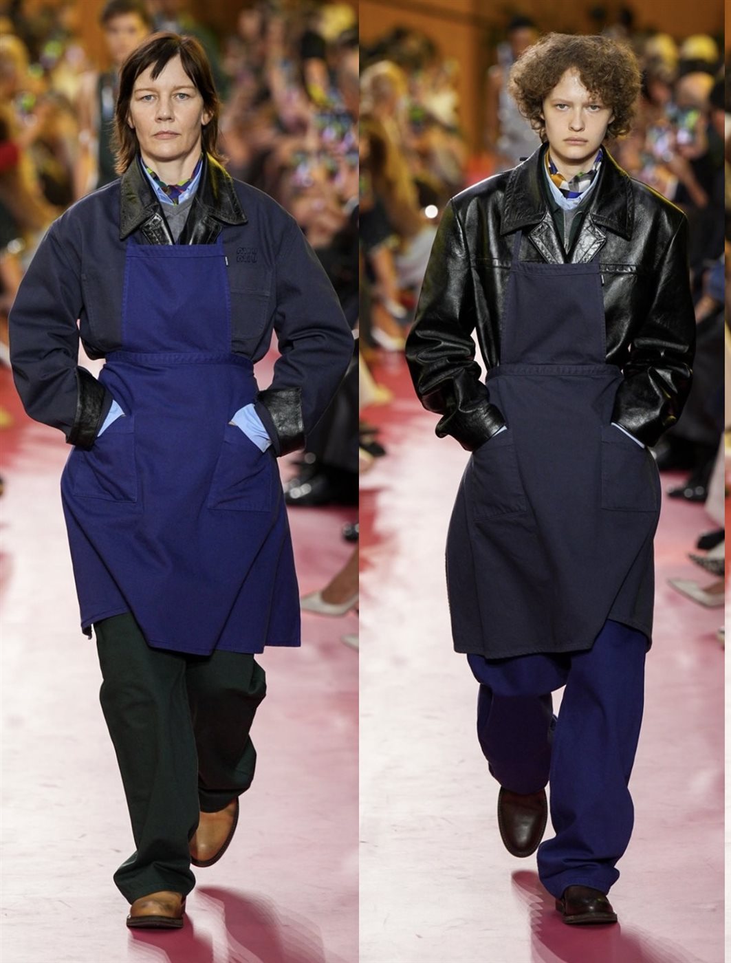 في هذا العرض، لم تكتفِ ميوتشا برادا بتقديم أزياء، بل طرحت تساؤلًا فلسفيًا حول معنى الأنوثة والعمل في العصر الحديث.