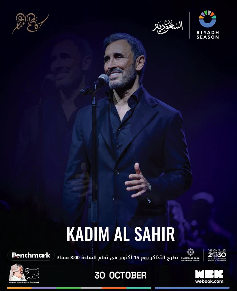 يختتم القيصر كاظم الساهر حفلات أكتوبر يوم 30 أكتوبر بليلة موسيقية استثنائية يُنتظر أن تعيد الحنين إلى زمن الطرب والشعر والموسيقى الراقية.