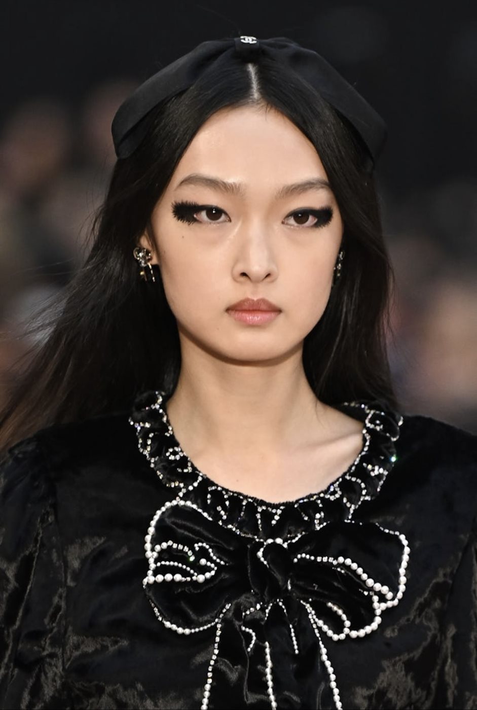 كما في عروض Dior وChloé وغيرها، تم إبراز إشعاع البشرة بدلاً من إخفائه، مع لمسات خفيفة من الإضاءة (highlighter) ودرجات ناعمة من أحمر الخدود. - العيون المبتكرة والقوية
