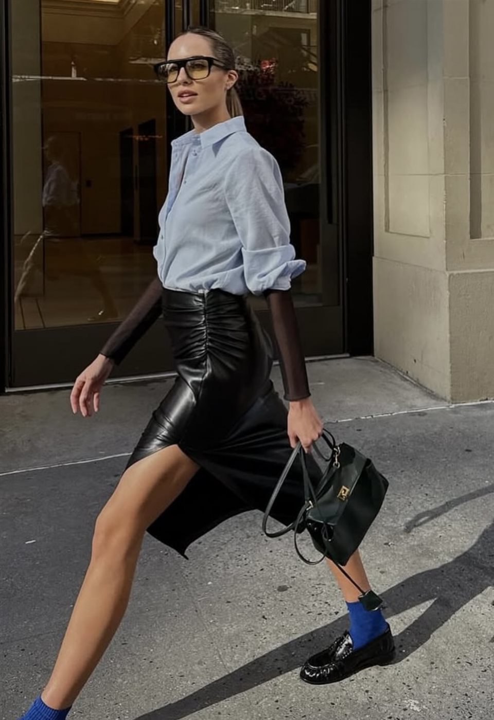 أما من جهة النجمات، فقد كانت هايلي بيبر من أبرز من أعادوا هذه القطعة إلى الواجهة بفضل إطلالاتها التي تجمع بين الجرأة والبساطة، حيث ظهرت بتنورة جلدية قصيرة مع معطف طويل بلون الكاميل، لتخلق توازناً بين الأنوثة والحداثة. كذلك اختارت كيندال جينر التنورة الجلدية الضيّقة مع بلوزة سوداء قصيرة في إطلالة ليلية لافتة. أما جيجي حديد فقد نسّقتها بأسلوب يومي مريح مع سترة جينز وقميص أبيض، مؤكدة أن هذه القطعة يمكن أن تتأقلم مع مختلف الأذواق والمناسبات.
