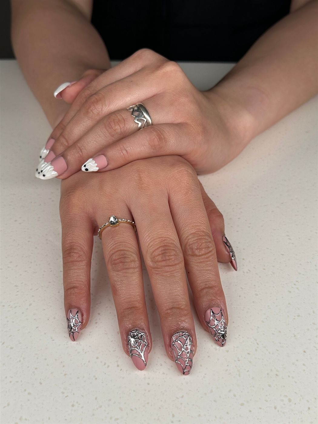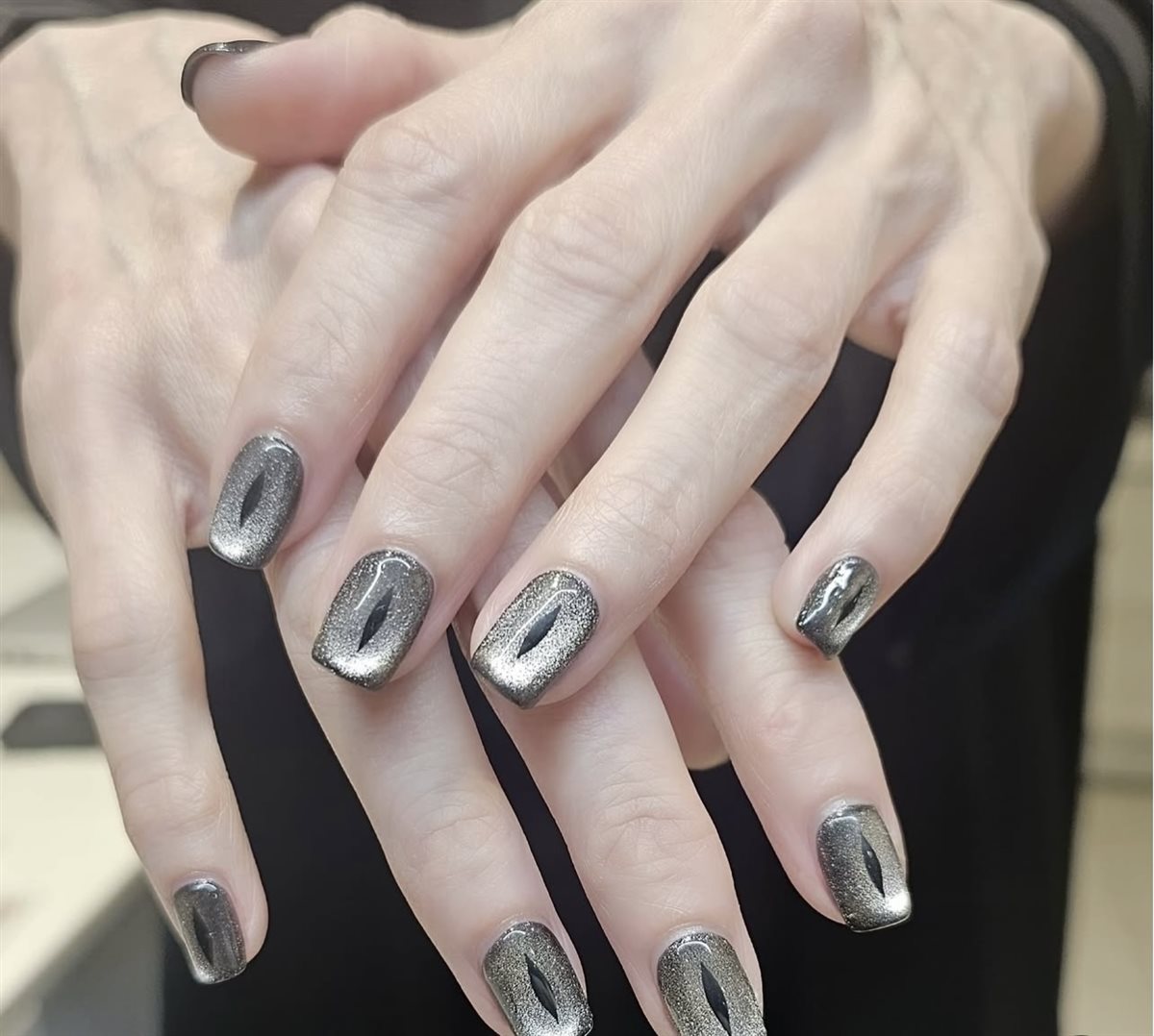 تصميم مستوحى من ليالي القمر والعناكب الغامضة، يمنح الأظافر طابعاً قوطيّاً أنيقاً. في The Wave Lounge، يتم تطوير هذا الأسلوب بإضافة لمسة معدنية براقة.