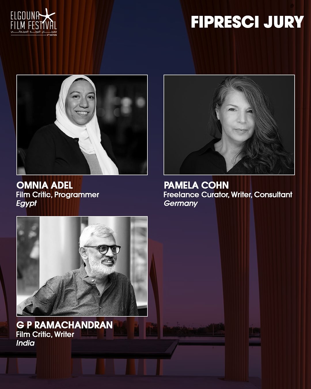 تتألف لجنة تحكيم الاتحاد الدولي للنقاد «فيبريسي» من الناقدة المصرية أمنية عادل، والمنسقة الفنية والكاتبة الألمانية باميلا كوهين، والناقد والكاتب الهندي راماشاندران بيشارات.