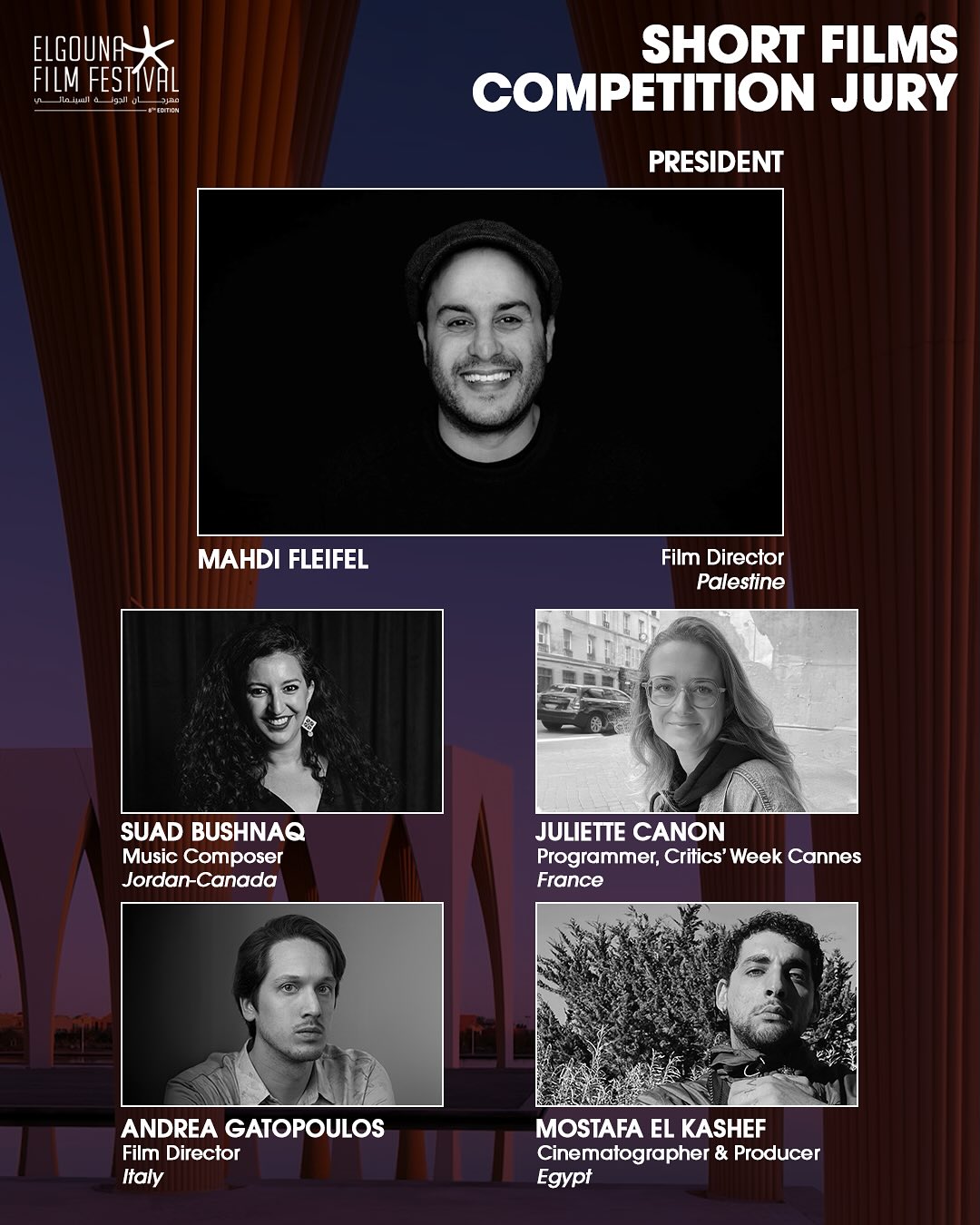 يتولى المخرج الدنماركي الفلسطيني مهدي فليفل رئاسة لجنة تحكيم مسابقة الأفلام القصيرة، بمشاركة كل من المخرج والمنتج الإيطالي أندريا جاتوبولوس، ومبرمجة الأفلام في أسبوع النقاد بمهرجان كان جولييت كانو، والمؤلفة الموسيقية الأردنية الكندية سعاد بشناق، ومدير التصوير والمنتج المصري مصطفى الكاشف.