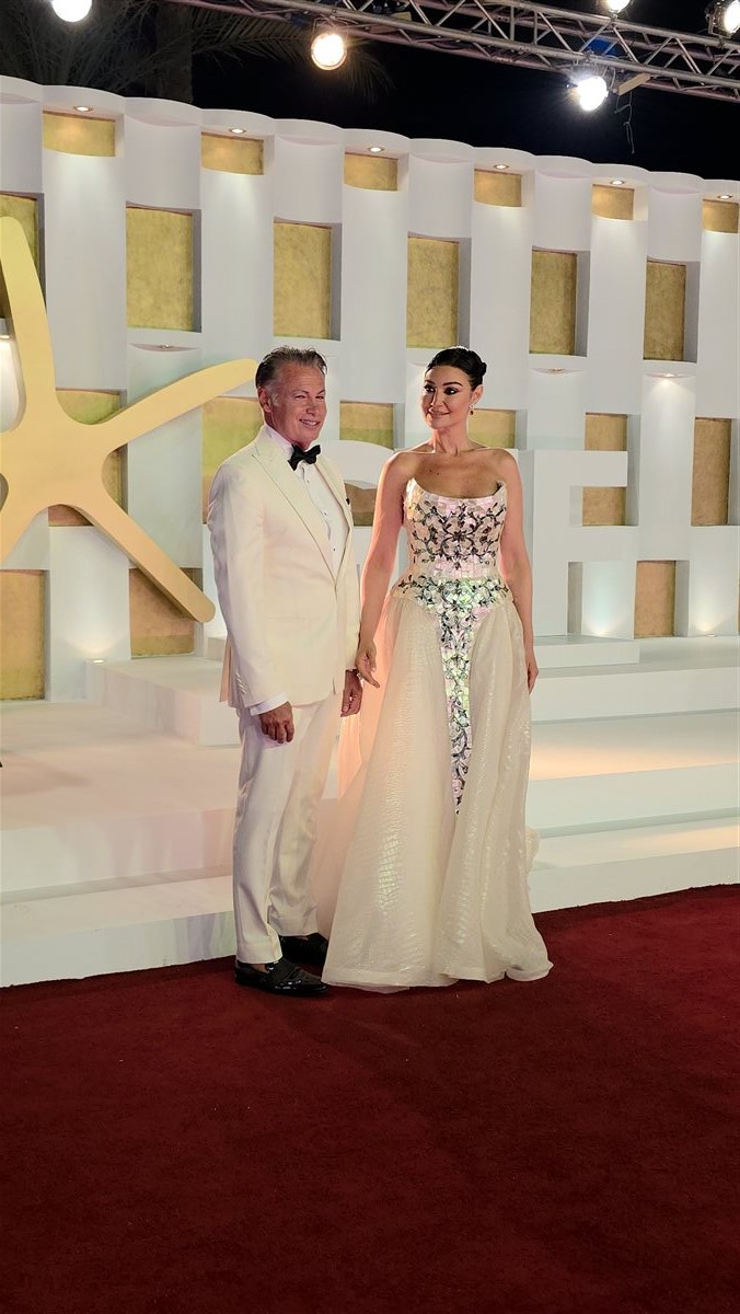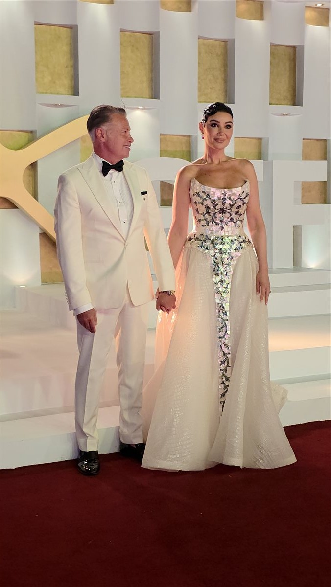 أما خطيبها، فاختار بدلة بيضاء بتصميم كلاسيكي راقٍ، مزج فيها بين الأسلوب العصري واللمسات التقليدية، مع قميص أبيض وربطة عنق أنيقة باللون ذاته. تناغم الإطلالتين منح المشهد لمسة من الانسجام والرقي، وجعل ظهورهما المشترك حديث مواقع التواصل الاجتماعي التي امتلأت بالتهاني والتعليقات التي وصفت الثنائي بـ”الثنائي الأجمل في الوسط الفني”.