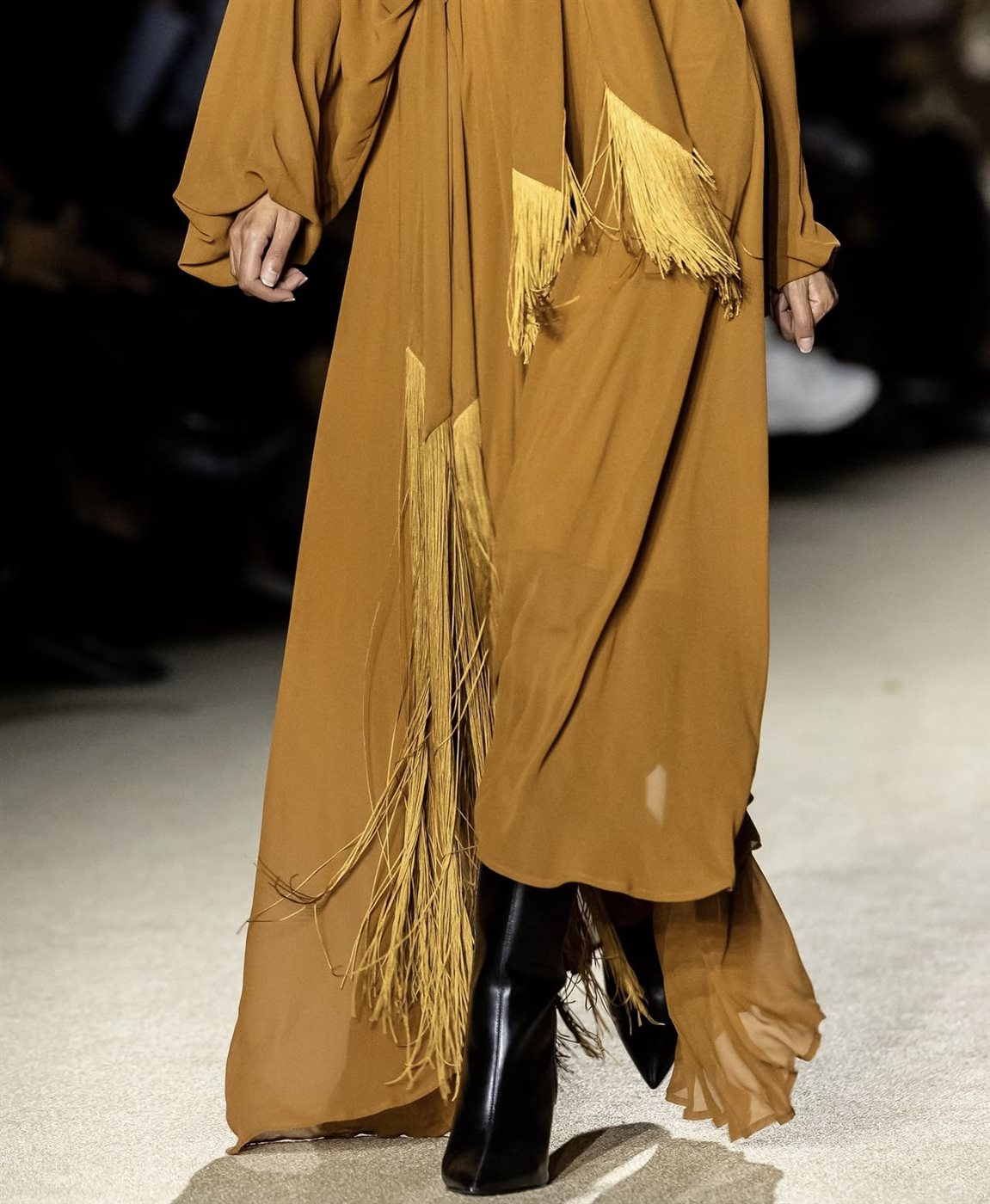 ومن حيث القصّات، قدّمت Leem مزيجاً بين الاحتشام والأناقة الأوروبية؛ فبرزت الكاب الطويلة والياقات العالية إلى جانب الأكمام المنفوخة، ما منح القطع حضوراً قوياً دون مبالغة. كما أدرجت الدار بعض التطريزات اليدوية المستوحاة من التراث العربي بطريقة عصرية حافظت على الأصالة وأدخلت لمسة من الفخر المحلي إلى كل تصميم.