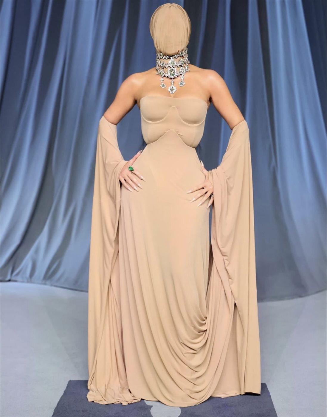 وفي ختام الحفل، أثبتت كيم كارداشيان أنها لا تحتاج إلى الكشف عن وجهها لتتحدث عنها الصحافة العالمية؛ يكفي أن تظهر بتصميم غير متوقع لتؤكد مجددًا أنها ظاهرة فنية وأيقونة أزياء لا تعرف التكرار.