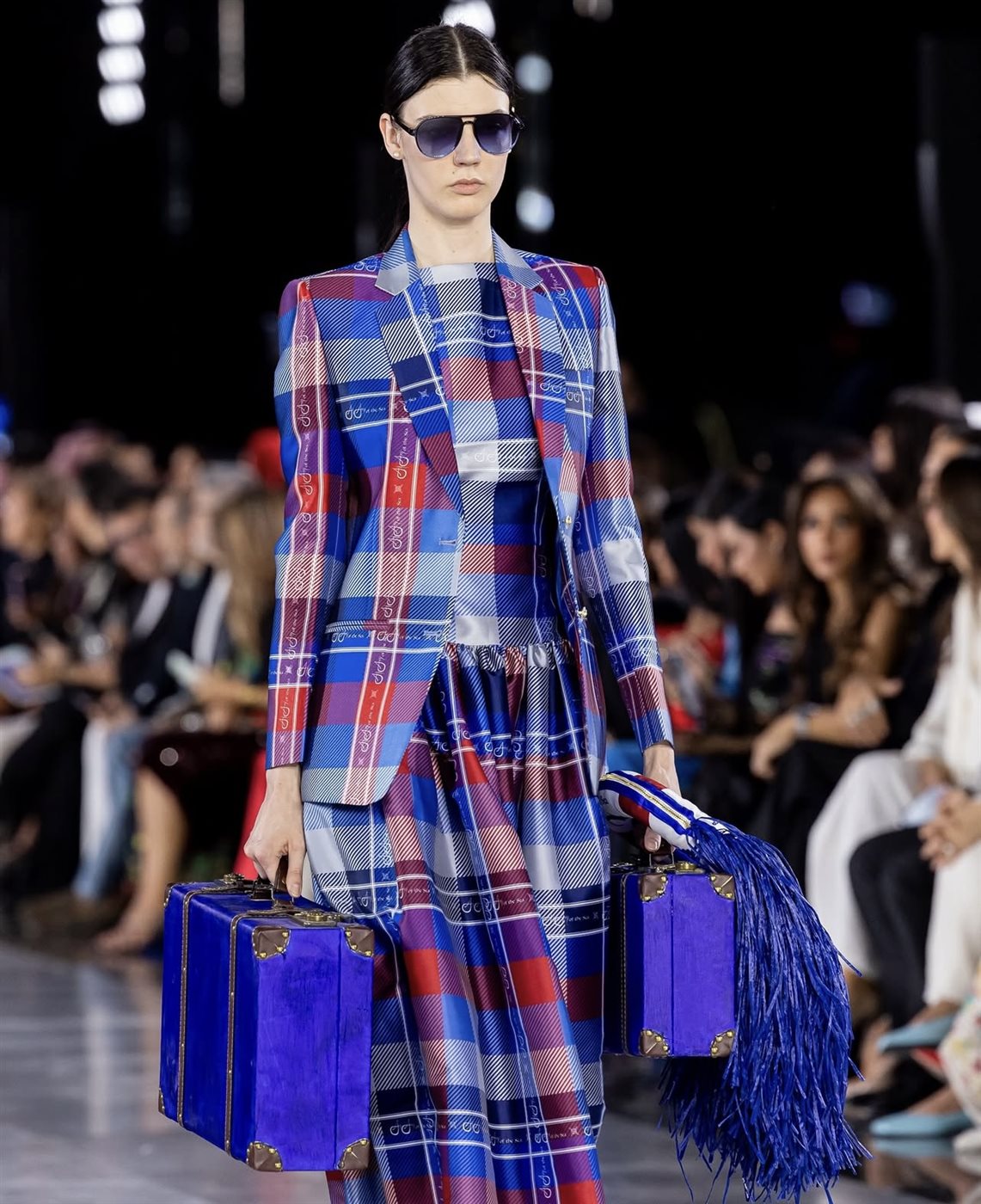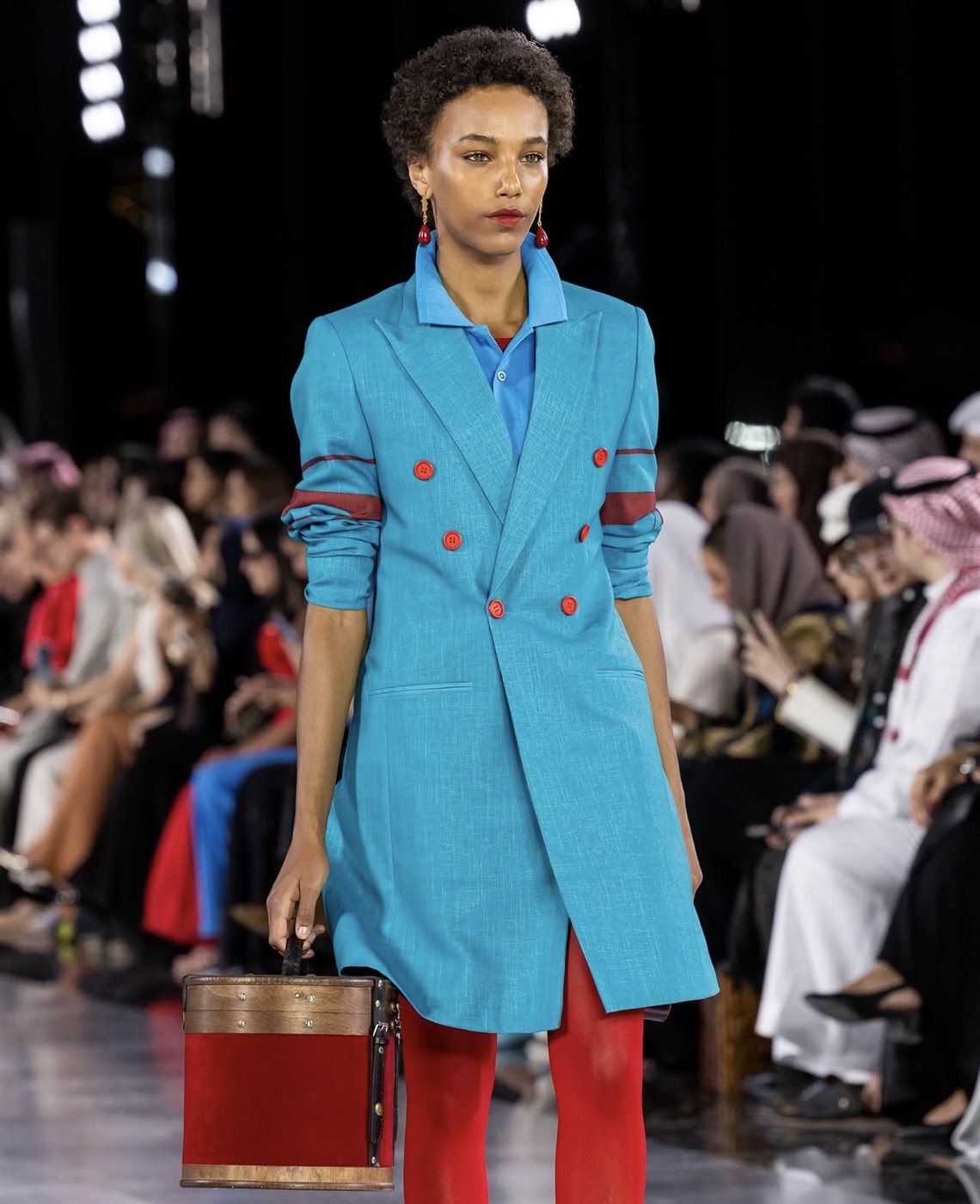 استلهمت Aram Designs مجموعتها من الجمال الأنثوي الكامن في التناقضات؛ فبين الأقمشة الفاخرة كالحرير والشيفون، والتطريز اليدوي المتقن، برزت تصاميم متوازنة بين الرقي والجرأة. كما تميز العرض بلوحة ألوان جريئة ومبهجة شملت الدرجات الازرق ، والأحمر والابيض ، واللمسات المعدنية التي تعكس ضوء المدينة العصرية، في إشارة إلى التحول الديناميكي الذي تشهده الرياض كعاصمة للأزياء.