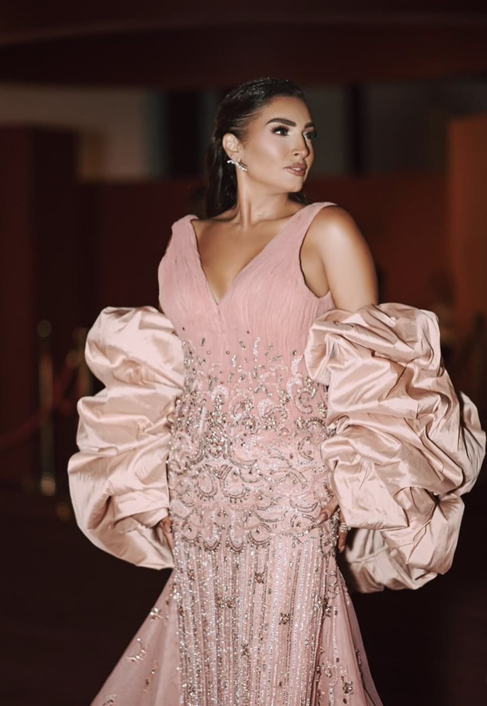 واكتملت الإطلالة بمجوهرات أنيقة من Glamour Jewellery أضافت لمسة من البريق الهادئ إلى اللوك الوردي المتكامل، فيما التقط المصوّر خالد سرحان الصور التي أبرزت تفاصيل الفستان وجمال الإطلالة في لقطات فنية مبهرة.