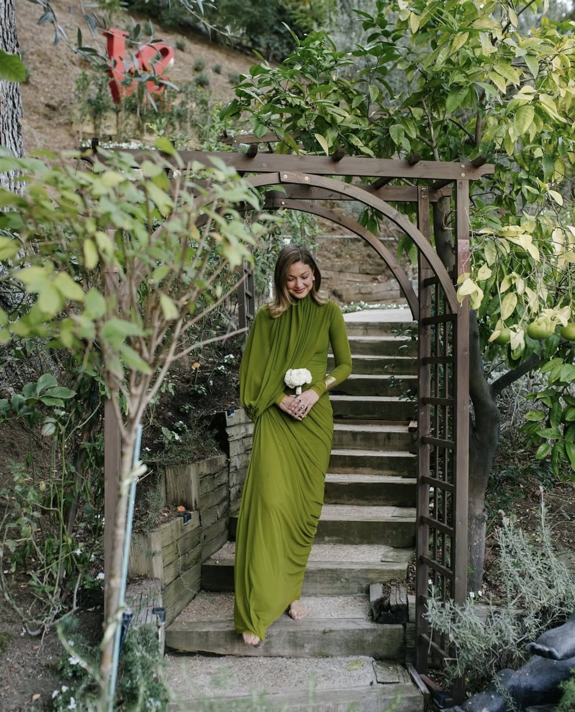 تألقت العروس آلانا حديد بإطلالة خلابة حملت توقيع المصممة البريطانية الشهيرة فيفيان ويستوود (Vivienne Westwood)، حيث اختارت فستاناً كلاسيكياً أنيقاً بقصّة ناعمة وأقمشة انسيابية تبرز جمالها الطبيعي بأسلوب راقٍ وخالد. وأكملت العروس أناقتها بمجوهرات من Dorsey وخاتم ذهبي صُمّم خصيصاً لها من Sophia Kaman، ما أضاف لمسة شخصية مميزة على إطلالتها في هذا اليوم الاستثنائي.