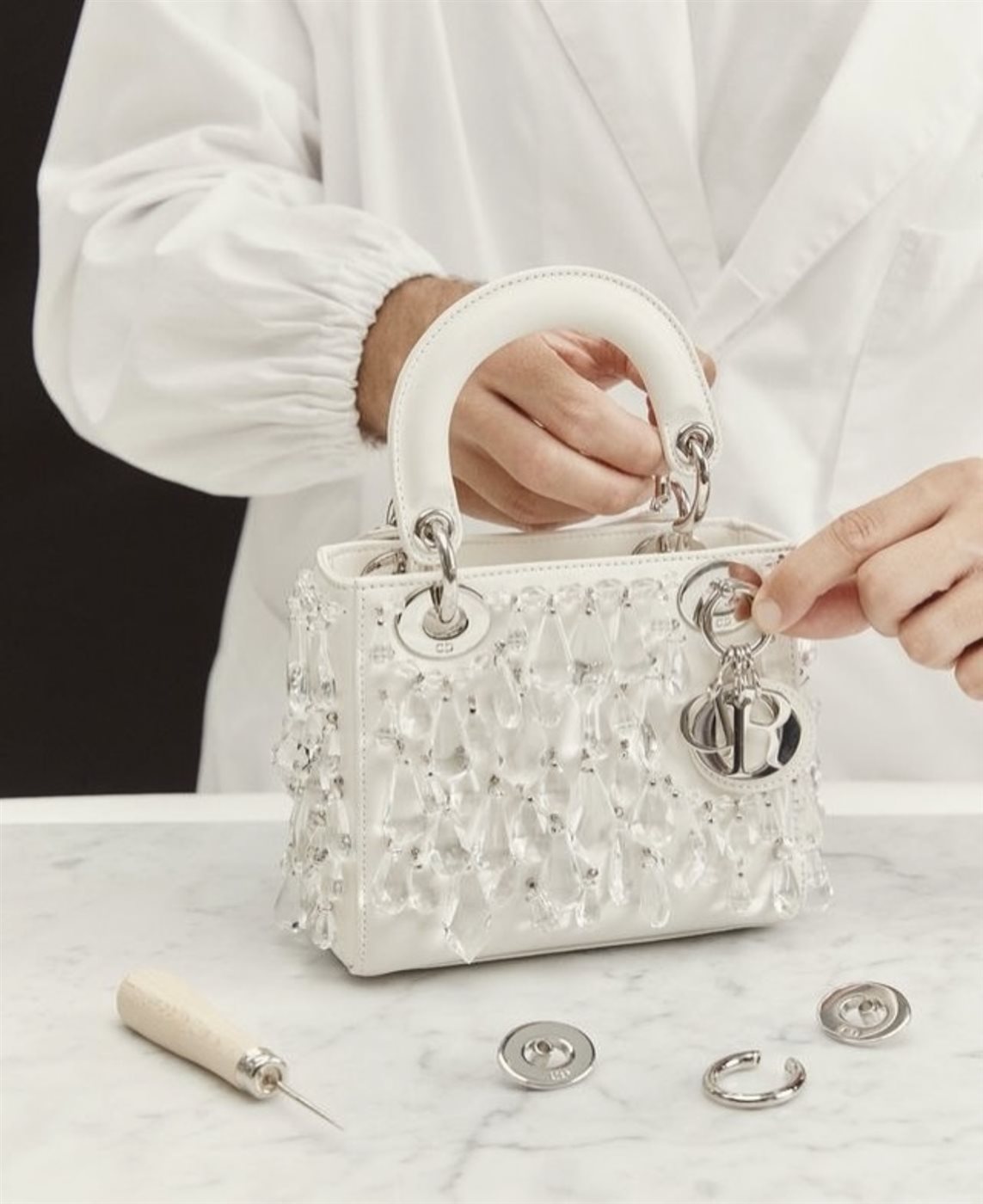 الجلد الأبيض واللمسات الكريستالية يرويان حكاية جديدة من إرث حقيبة ليدي ديور الخالدة