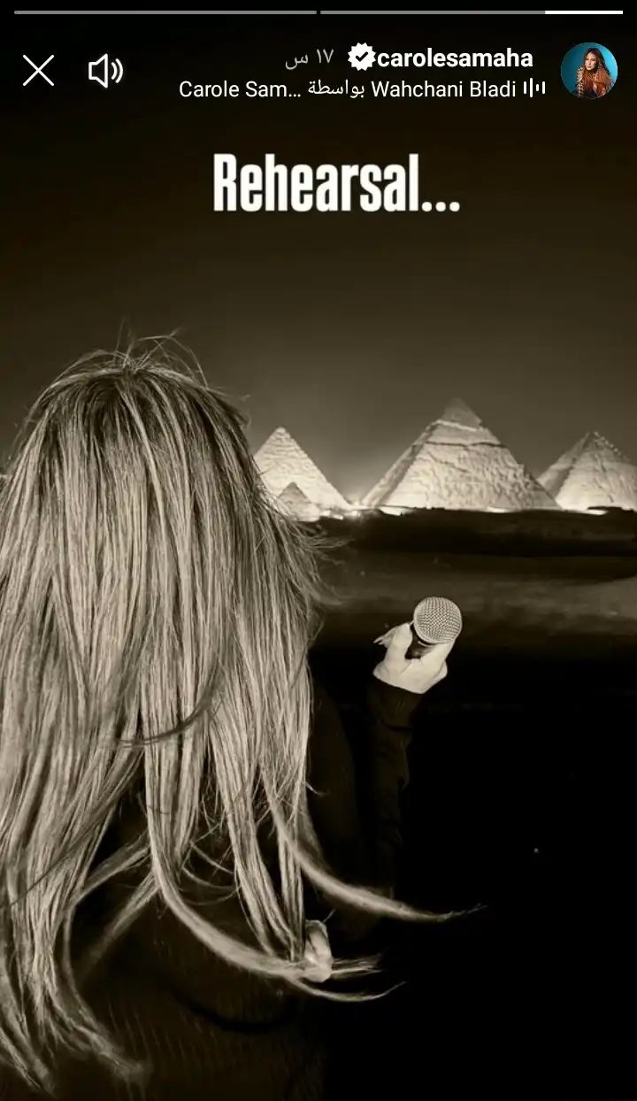 وقد حرصت كارول سماحة على مشاركة متابعيها لحظات التحضير للحفل عبر حسابها على "إنستغرام"، حيث نشرت صورًا لها أمام الأهرامات وهي تستعد للأداء، وعلّقت ببساطة: "بروفات"، وفي صورة أخرى كتبت: "اليوم"، في إشارة إلى حماستها للمشاركة في هذا الحدث الفني العالمي.