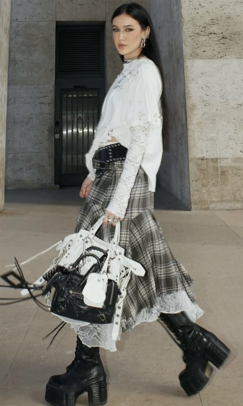 - مع فستان قصير أو شورت: لمن ترغب بظهور أكثر طولًا أو نمط أقوى، اختاري منصّة مع شورت أو فستان ميني كما فعلت Sabrina Carpenter ليكون الحذاء نقطة محورية.