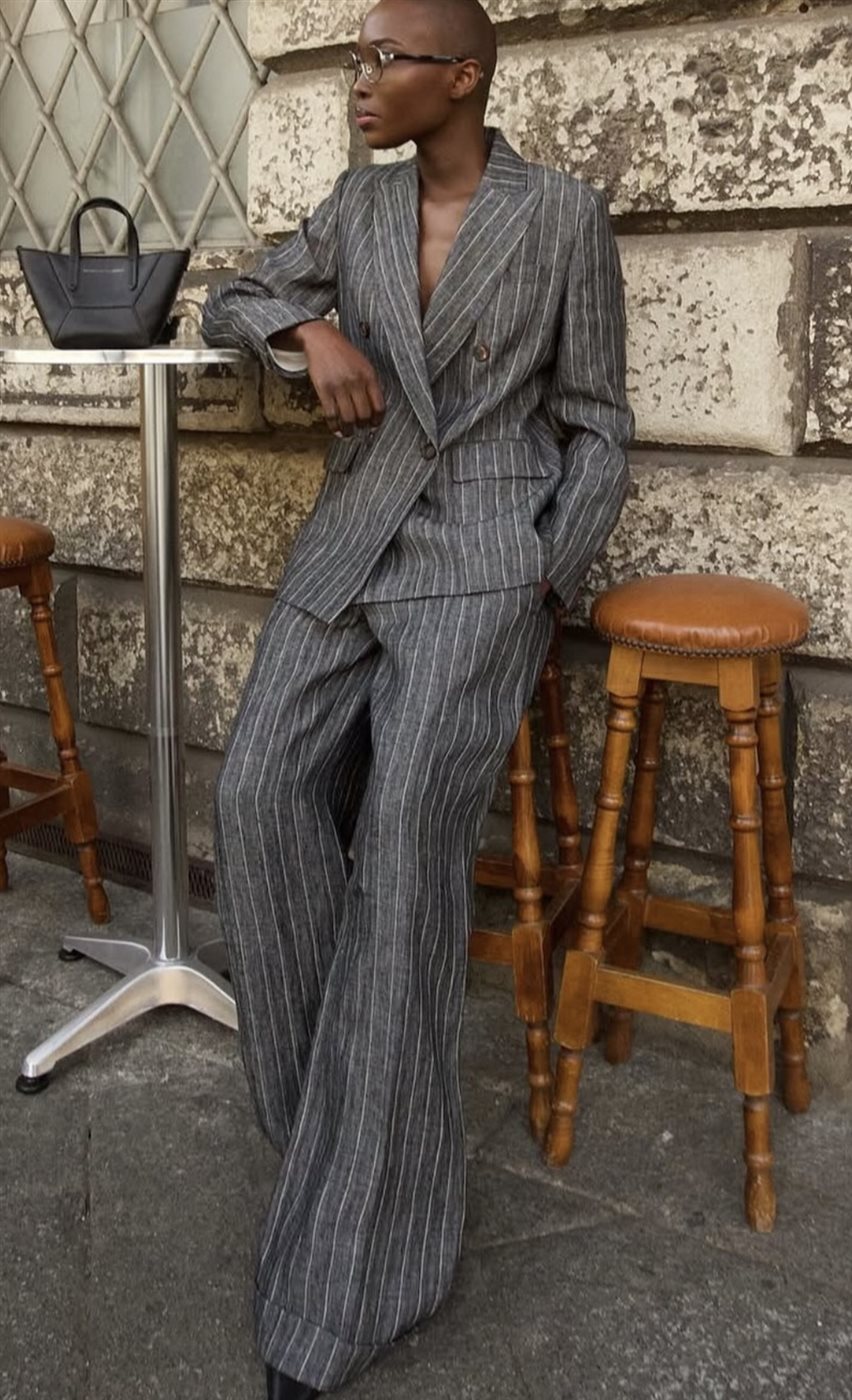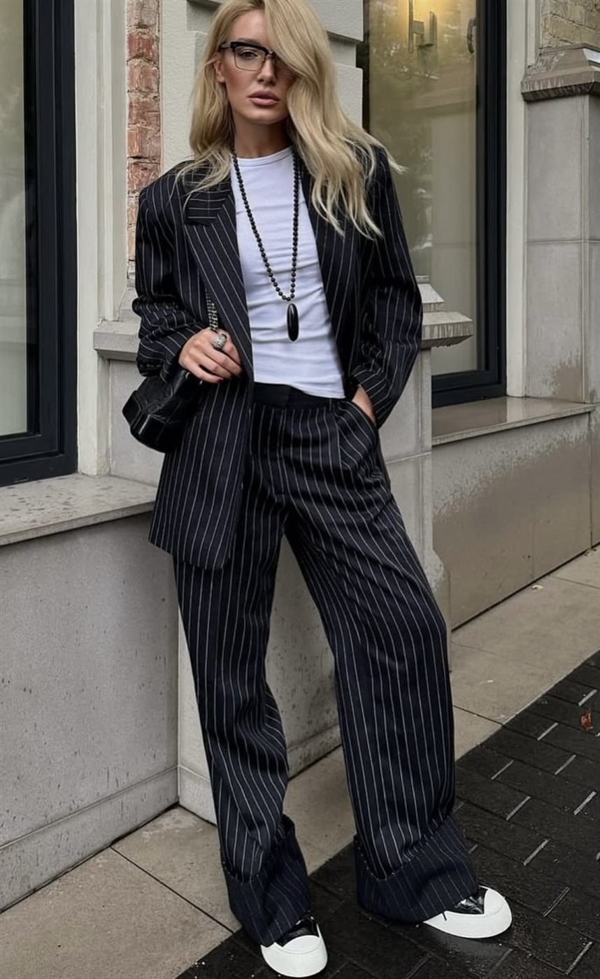 وتتميّز البدلة المخططة بقدرتها الفريدة على الانتقال بسلاسة من أجواء العمل الرسمية إلى المناسبات المسائية دون الحاجة لتغيير الإطلالة. في الصباح، يمكن تنسيقها مع قميص أبيض بسيط وحذاء كلاسيكي لتجسّد صورة المرأة المهنية الأنيقة، وفي المساء يمكن تحويلها بلمسات صغيرة مثل حذاء بكعب عالٍ وأقراط معدنية لافتة إلى إطلالة عصرية جذابة. وقد برز هذا الاتجاه بوضوح في عروض دور الأزياء العالمية مثل Alexander McQueen وVictoria Beckham وMax Mara، حيث ظهرت تصاميم متنوعة تتراوح بين القصّات الضيقة ذات الخصر المحدد والتصاميم الفضفاضة المستوحاة من أسلوب الرجال.