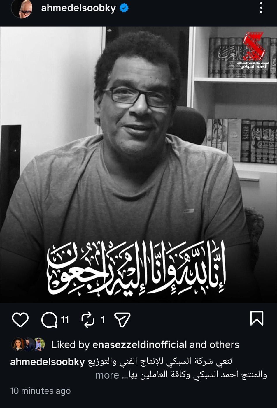 وحرص السبكي على تقديم واجب النعي في الكاتب الراحل، وذلك عبر حسابه الرسمي على موقع الصور والفيديوهات الشهير إنستجرام.