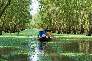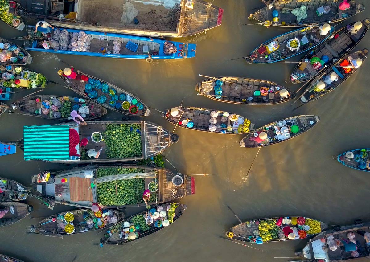 بمغادرة بنوم بنه في وقت متأخر من بعد الظهر، والدخول إلى أخيرًا نهر ميكونغ، وبحلول الصباح، ستكون في فيتنام، مكانًا أكثر صخبًا ونشاطًا. لا تزال قوارب السامبان الفردية ترمي الشباك، لكن الصيد الجبار يُمارس في المزارع العائمة، وهي أكواخ مبنية على صنادل مطلية بألوان زاهية. في تشاو دوك، ركبنا عربة تلفريك صاعدين جبل سام، ومنه رأينا تمثالًا لبوذا على طراز جبل راشمور يُنحت تخليدًا لأسطورة الإلهة با تشوا شو وتسع عذارى فائقات القوة.