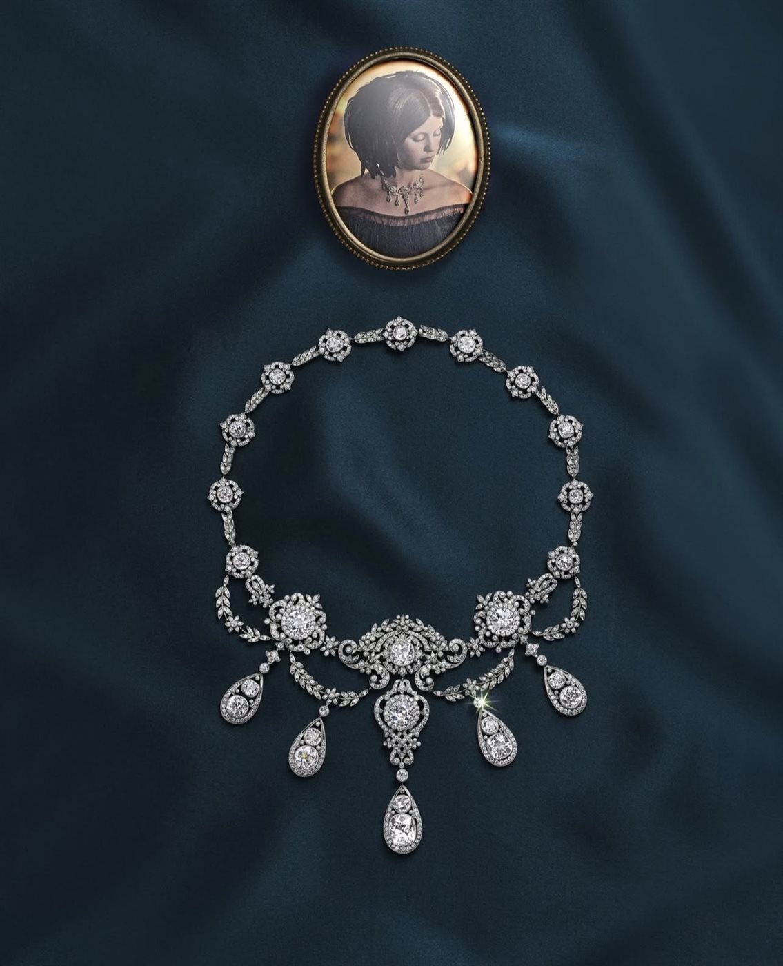 القطعتان هما العقد الماسي “The Wade” والخنق الأنيق “The Beetle”، وهما من المجوهرات التي تجسد الحرفية الرفيعة والدقة التي عُرفت بها الدار. اختيارهما في العمل ليس مجرد تفصيل جمالي، بل تعبير عن عمق الشخصية وغموضها، حيث يضيفان بريقاً يكمّل سحر الأداء السينمائي.