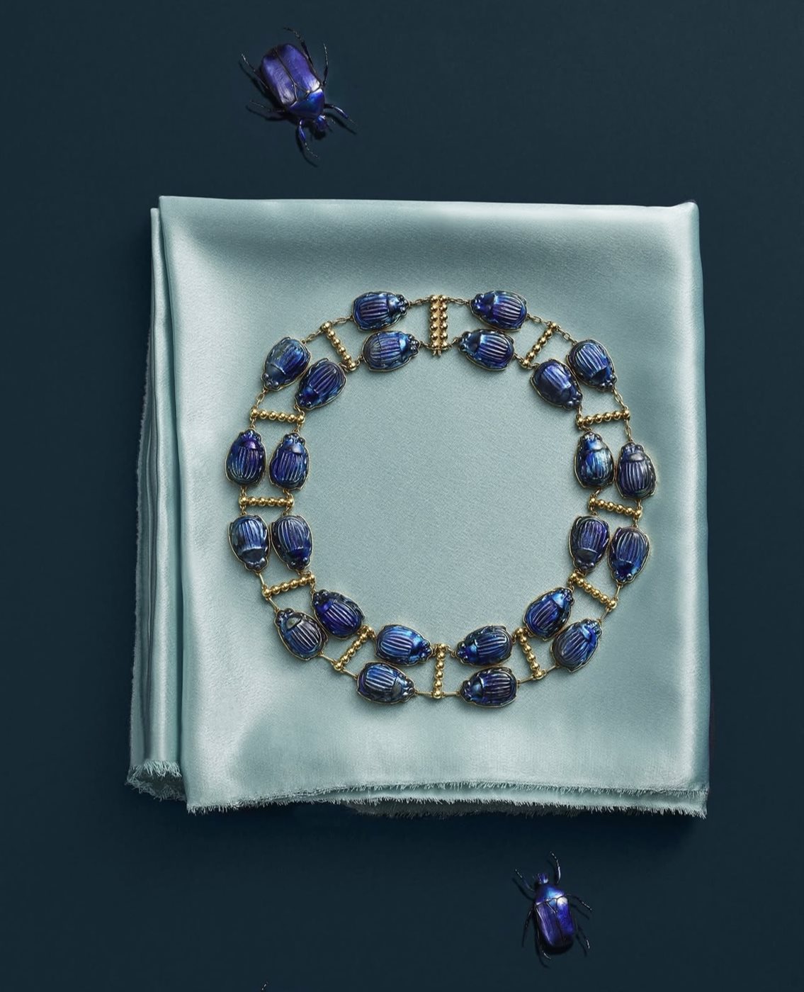 وعقد “The Beetle Necklace”: قطعة فريدة من أوائل القرن العشرين (1914 تقريباً) من تصميم Meta Overbeck تحت إشراف Louis Comfort Tiffany، تتميز بزخارف خنفساء من الزجاج الفافر (إيريديسنت) ومجموعة من الذهب تجسيد لحب الطبيعة والفن لدى العلامة.