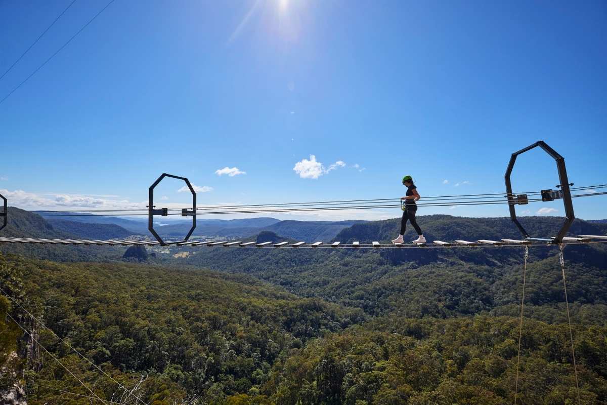 تبدأ التجربة بتسلق أريتي فيا فيراتا، حيث يتخطى الزوار الحافة في رحلة صعود خلابة عبر جسر بطول 80 مترًا، مرورًا بحبال مشدودة ومعابر خشبية معلقة عاليًا فوق الوادي. ومن هناك، ينطلقون إلى "توتال إكسبوجر"، أطول وأعلى مسار انزلاقي في الحديقة، حيث ينزلقون على ارتفاع 200 متر فوق منتزه لامينغتون الوطني.