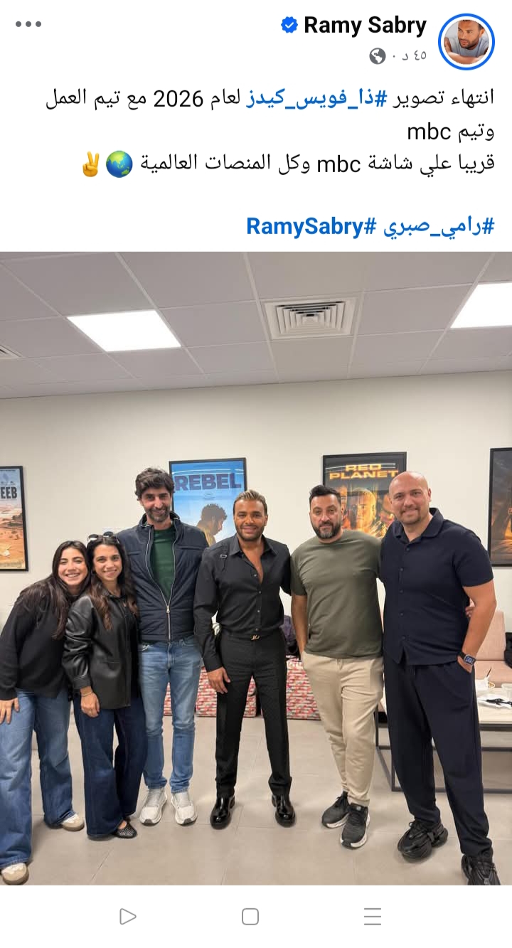 ونشر صبري عبر حسابه الرسمي الفيسبوك صورة تجمعه بفريق العمل، وعلق عليها قائلاً: "انتهى تصوير ذا فويس كيدز لعام 2026، مع فريق العمل وفريق mbc، قريبًا على شاشة mbc وكل المنصات العالمية."