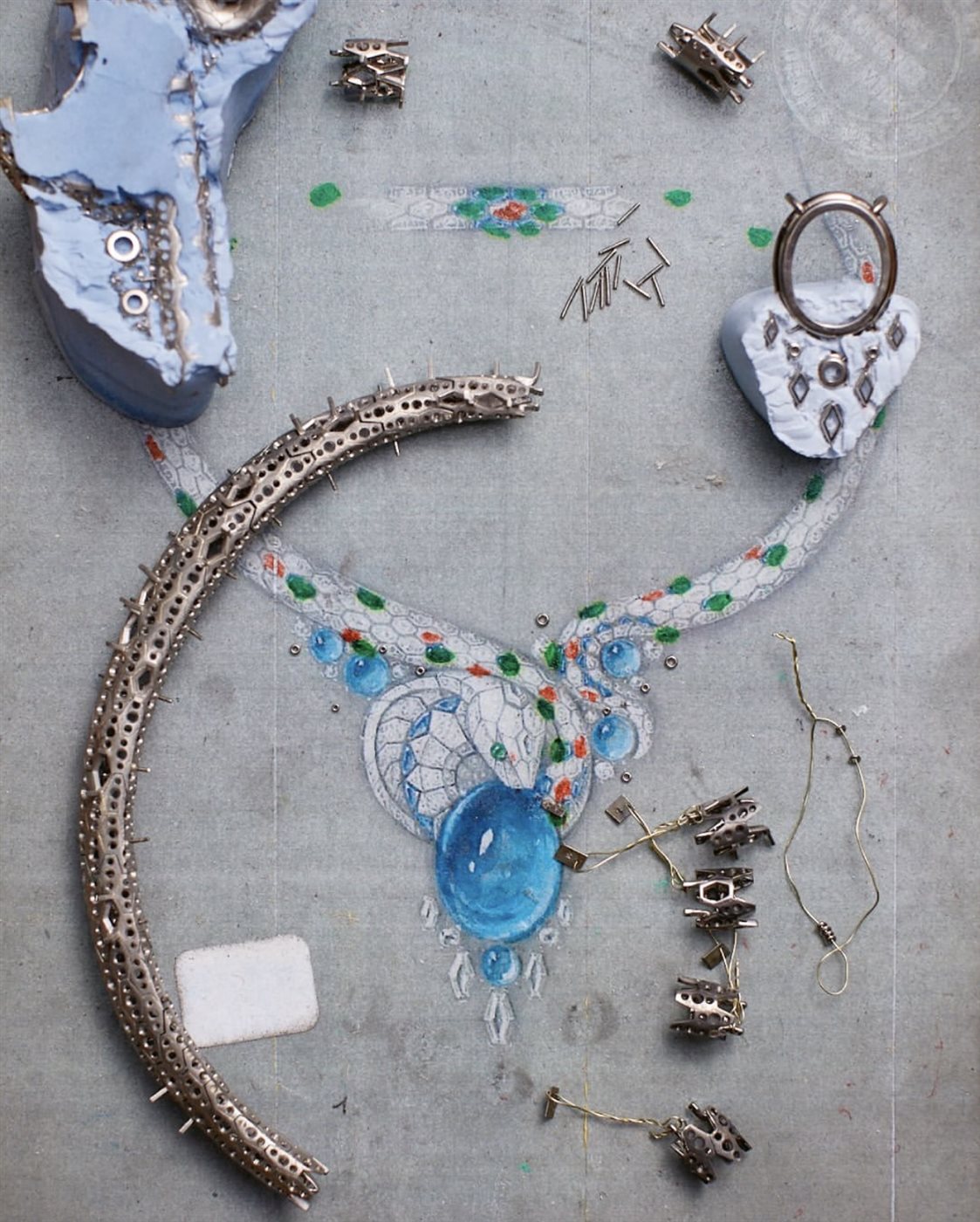 ويعكس تصميم الكوبرا رمزية مذهلة؛ فالثعبان لدى كارتييه ليس مجرد عنصر جمالي، بل رمز للقوة، الحماية، والخلود. وقد برعت الدار في تحويل هذا الرمز إلى قطعة فنية لا تحمل الطابع الروحي فقط، بل تعكس أيضًا ابتكارًا تقنيًا فائق الدقة في طريقة التفاف العقد حول الرقبة بانسيابية وكأنه ينبض بالحياة.