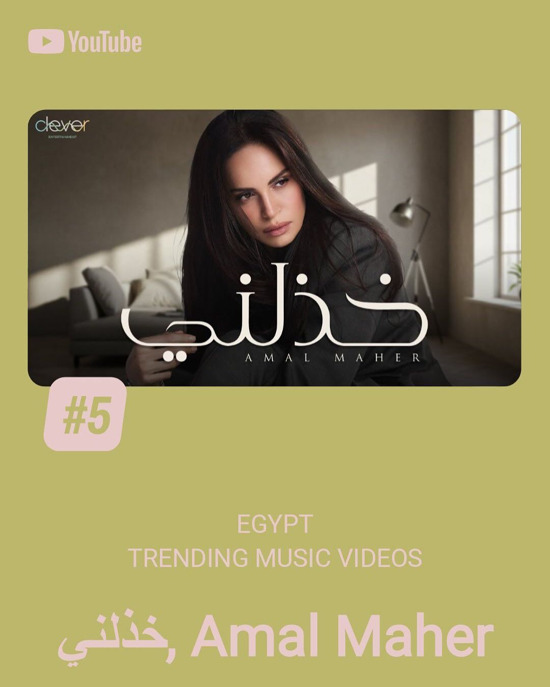 بعد اسبوع واحد من طرح أغنيتها "خذلني"، صعدت آمال ماهر إلى قائمة الأكثر استماعا في مصر على منصة يوتيوب ميوزيك، بينما احتلت نفس الأغنية المركز ال 21 في يوتيوب السعودية لتسجل عودة معقولة لامال في الخليج.
