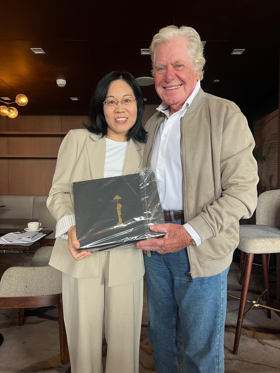 ومنذ اللحظات الأولى للقاء، حرص الفنان حسين فهمي على الترحيب بالوفد الصيني، مؤكدًا أهمية التعاون الثقافي والفني بين مصر والصين، خاصة في ظل ازدياد حضور السينما الصينية على الساحة العالمية. وقد أهدى رئيس المهرجان أعضاء الوفد مجموعة من الهدايا التذكارية الرسمية التي تحمل هوية الدورة 46 للمهرجان، في gesture احتفائي يعكس التقدير والعلاقات الممتدة بين الجانبين.