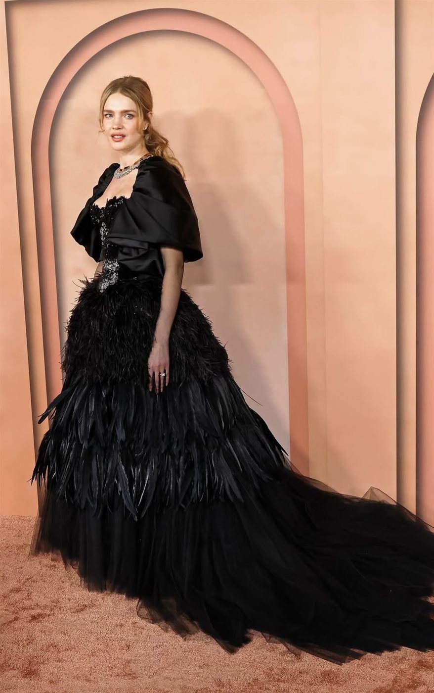 ومن بين أكثر الإطلالات لفتًا للأنظار، كانت إطلالة الممثلة تيسا طومسون التي اعتمدت فستانًا أنيقًا بتفاصيل ريش حول الأكمام، ونسقته مع قفازات بيضاء طويلة وحقيبة ذهبية صغيرة، ما أضفى عليها لمسة كلاسيكية فاخرة مع حضور درامي يتماشى مع جو الأمسية. أما بقية الضيوف، فتنوّعت خياراتهم بين القصات الانسيابية والتصاميم المفعمة بالفخامة، في استعراض راقٍ للموضة الراقية على أرض الدوحة.