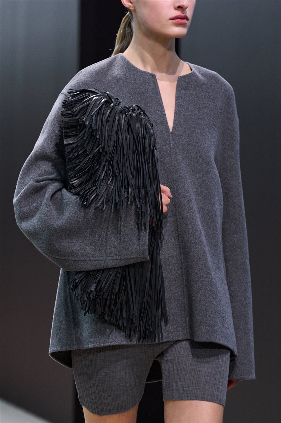 وتكررت الشراريب أيضًا في الحقائب والأحذية، لتؤكد فيراغامو أن الصيحة ليست محصورة في الملابس، بل تمتد إلى مجموعة الإكسسوارات لتضفي لمسة جريئة على الإطلالة اليومية أو المسائية.