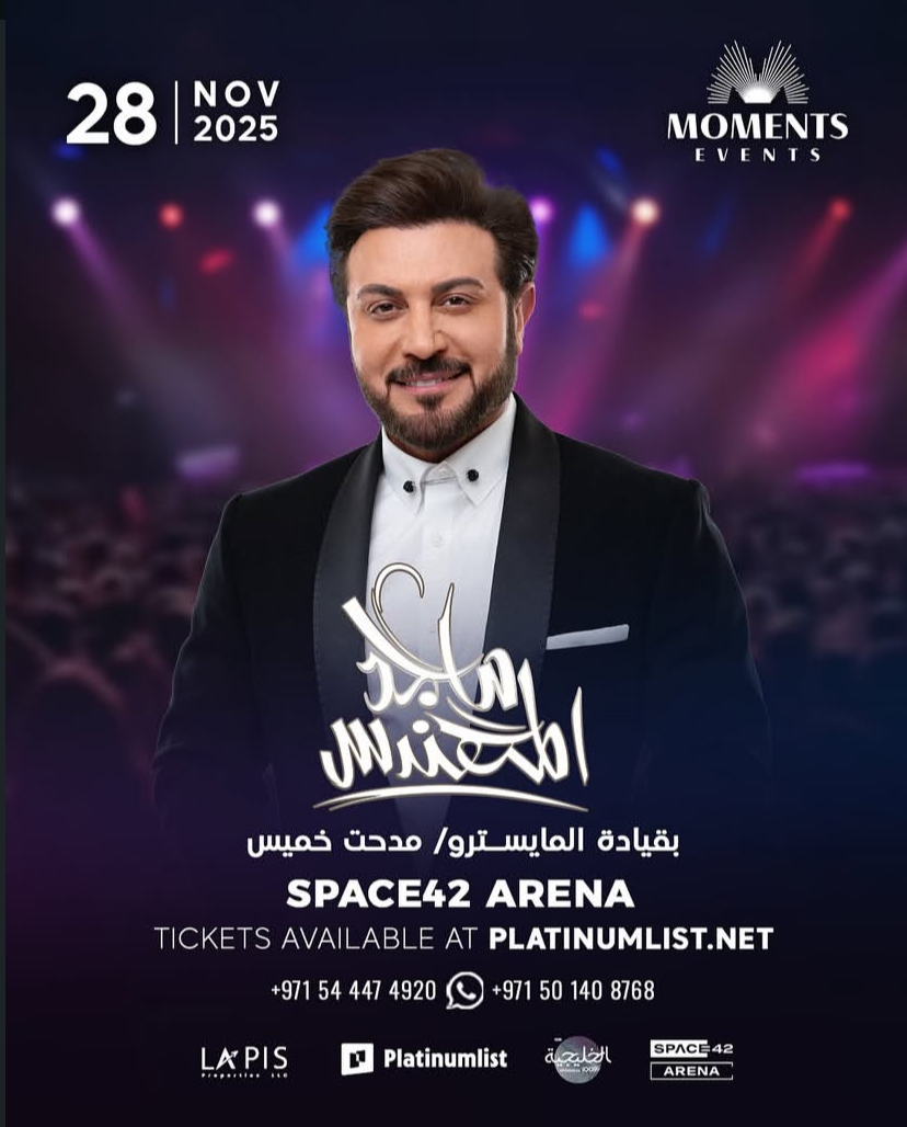 وينتظر محبوه سهرة مميزة تجمع بين الإحساس العالي والطرب الخليجي الأصيل في أمسية فنية تؤكد حضور ماجد المهندس المستمر في مقدمة نجوم الأغنية العربية.