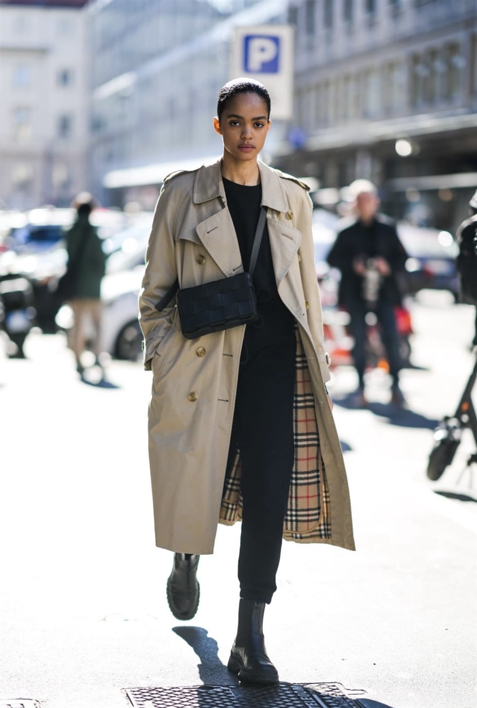 أما الـ Trench Coat، القطعة الأكثر ارتباطاً باسم Burberry، فلا يزال الرقم واحد في خزانة الشتاء. هذا المعطف الذي وُلد في حقبة الحرب العالمية الأولى، تحوّل بمرور العقود إلى رمز للراحة والرقي في آن واحد. وتقدّمه الدار هذا الموسم بقصّات أكثر انسيابية، وقياسات واسعة تناسب أسلوب الـ Oversized الذي يسيطر على الموضة، إضافة إلى خامات مبتكرة تجمع بين القطن المعالج، الجلد الخفيف والصوف الفاخر. وتبرع النجمات في ارتدائه بطرق متنوعة؛ فاختارته بيلا حديد بلون البيج الكلاسيكي فوق إطلالة مونكروم سوداء، بينما فضّلته هيلي بيبر بقصّة واسعة مع بوت جلدي عالٍ لإطلالة عملية وراقية.