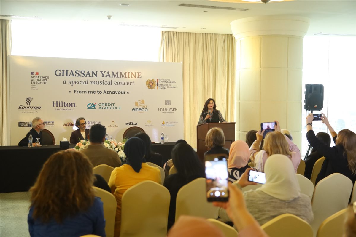 وكشف المؤتمر عن مشاركة الفنان اللبناني غسان يمّين في إحياء الحفلين، حيث يقدم تجربة موسيقية خاصة تعيد إحياء أعمال أزنافور بروح جديدة، بمرافقة أوركسترا السيمفوني نايل بقيادة المايسترو محمد سعد باشا. وأعرب يمّين عن سعادته بالمشاركة قائلاً: “أزنافور كان جزءًا من طفولتي، ولقاءاتنا المتكررة في باريس تركت أثرًا عميقًا في مسيرتي… كنت دائمًا مأخوذًا بنصوص أغانيه قبل ألحانها، رغم أنني موسيقي”.