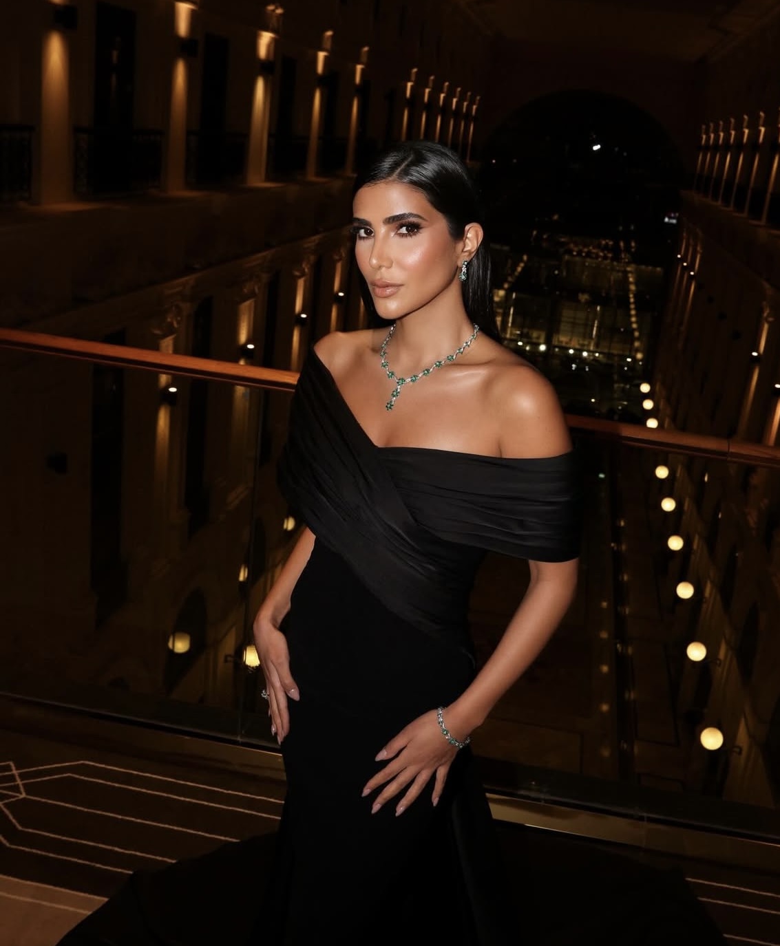 الإكسسوارات لعبت دورًا مهمًا في اكتمال الإطلالة؛ فقد اختارت ريم مجوهرات لافتة من Mouawad، تضمنت قلادة مرصعة بالأحجار وقطعًا داعمة من الخواتم والأساور، شكّلت تكاملاً بصريًا مثاليًا مع الفستان الأسود دون أن تطغى على هدوء التصميم. التوازن بين لمعان المجوهرات وعمق اللون الأسود ساهم في تعزيز حضورها على السجادة الحمراء وإضافة بريق خاص للإطلالة.