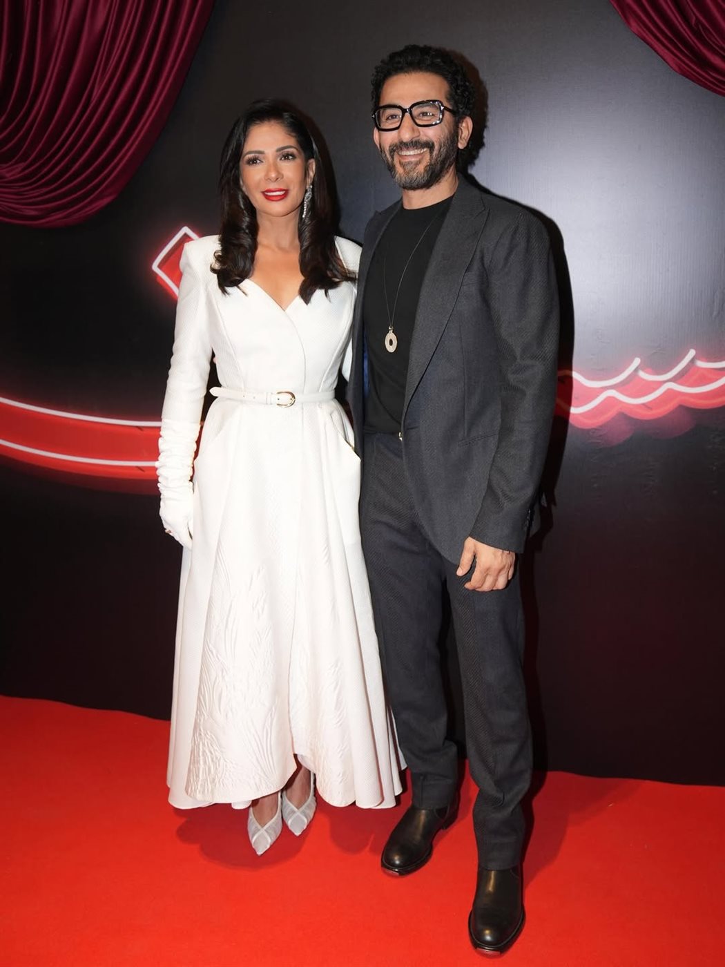 وحرص عدد كبير من الفنانين على حضور العرض الخاص لفيلم “الست” على رأسهم منى زكي التي تألقت بفستان أبيض كلاسيكي كأنها عائدة من زمن الفن الجميل، كما ظهر برفقتها زوجها أحمد حلمي والذي يظهر في الفيلم كضيف شرف معها مجسدًا دور ظابط.