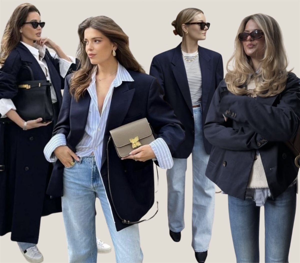 حيث تنسيق الجينز الأزرق الفاتح مع بليزر أو معطف كحلي داكن، ما يعكس انسجاماً لافتاً بين الدرجات ويمنح الإطلالة حيوية متجددة دون أي تعقيد.